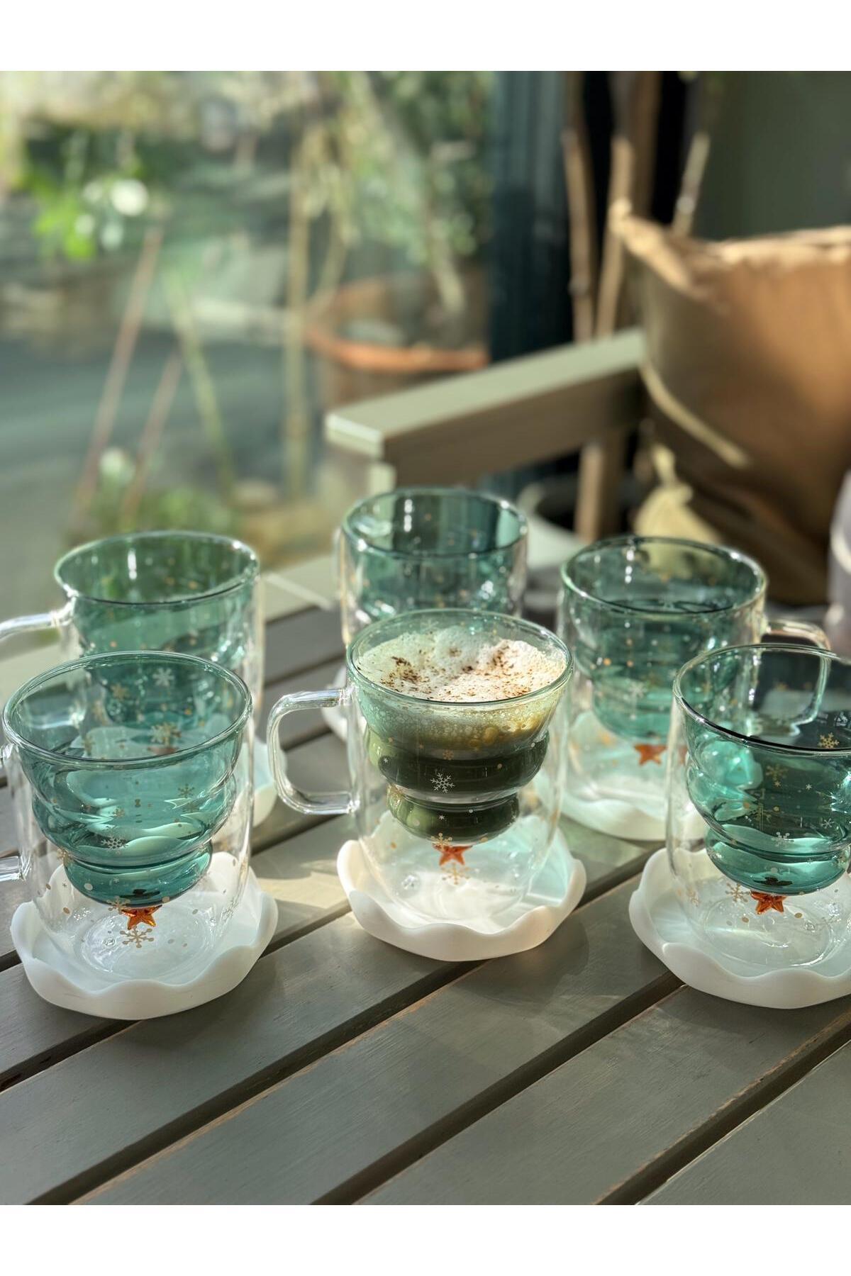 Linanware Çift 2 Li Camlı Cidarlı Kapaklı Kupa 250ML DC154