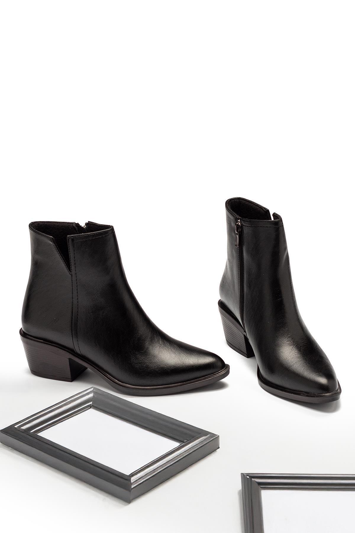 Kadın Siyah Streç Bot Bilekli Kısa Küt Kalıp Deri Kaliteli Bot Topuklu Kışlık Bot & Bootie