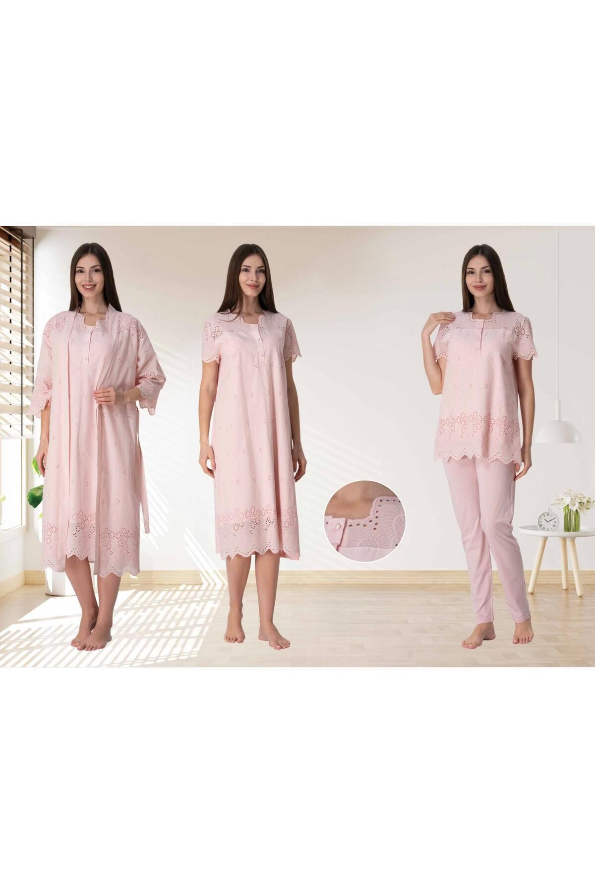 - 4'lü set içeriğiyle sabahlık, pijama ve gecelik olarak farklı kombinasyon seçenekleri sunar.