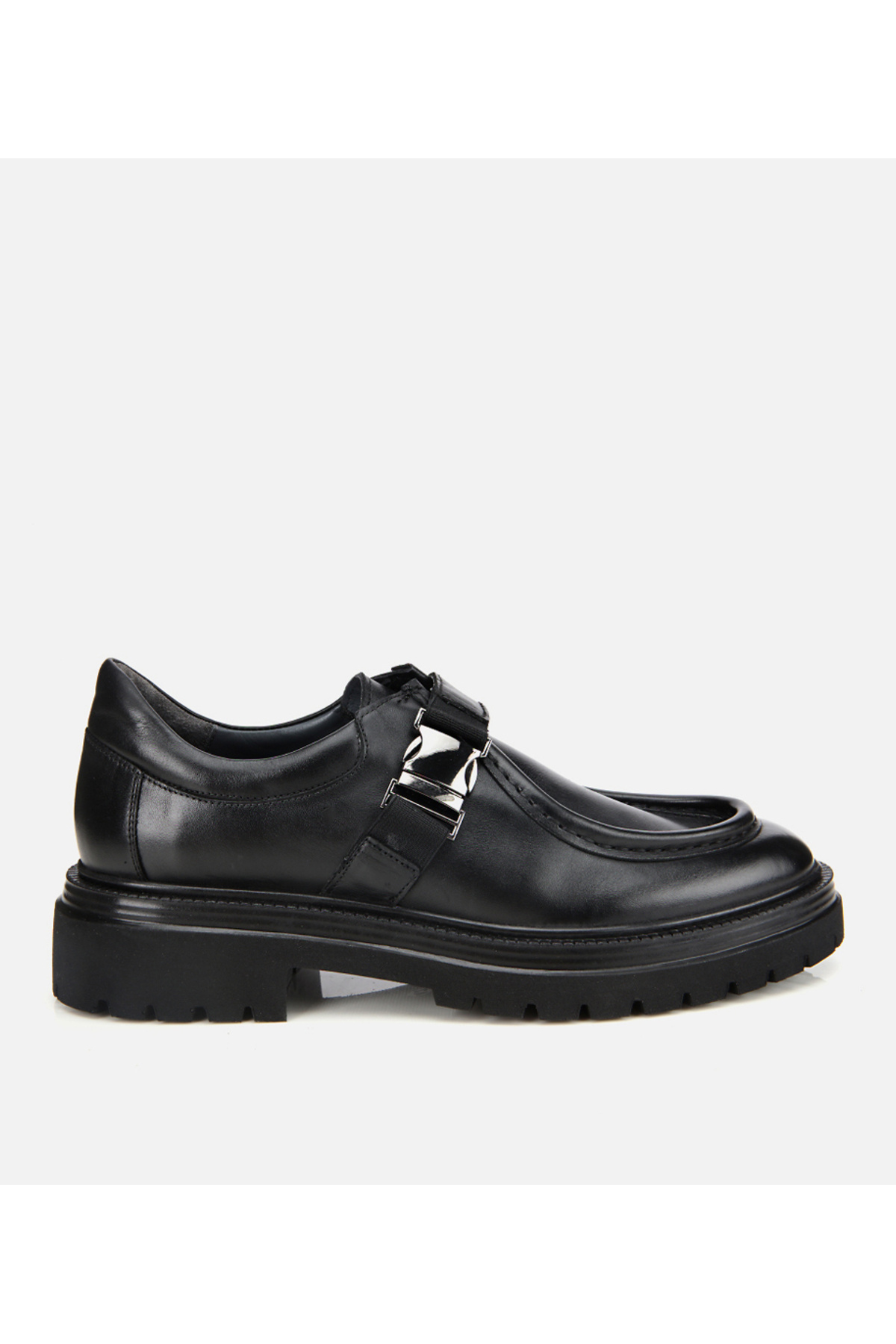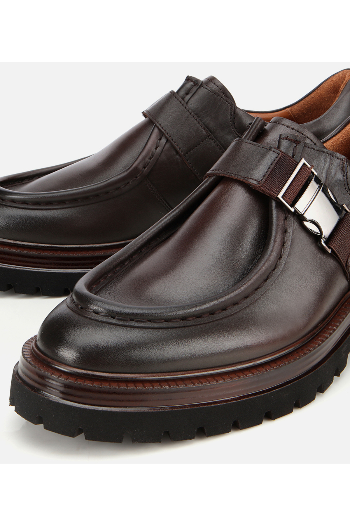Erkek Deri Kahverengi Metal Tokalı Klasik Loafer