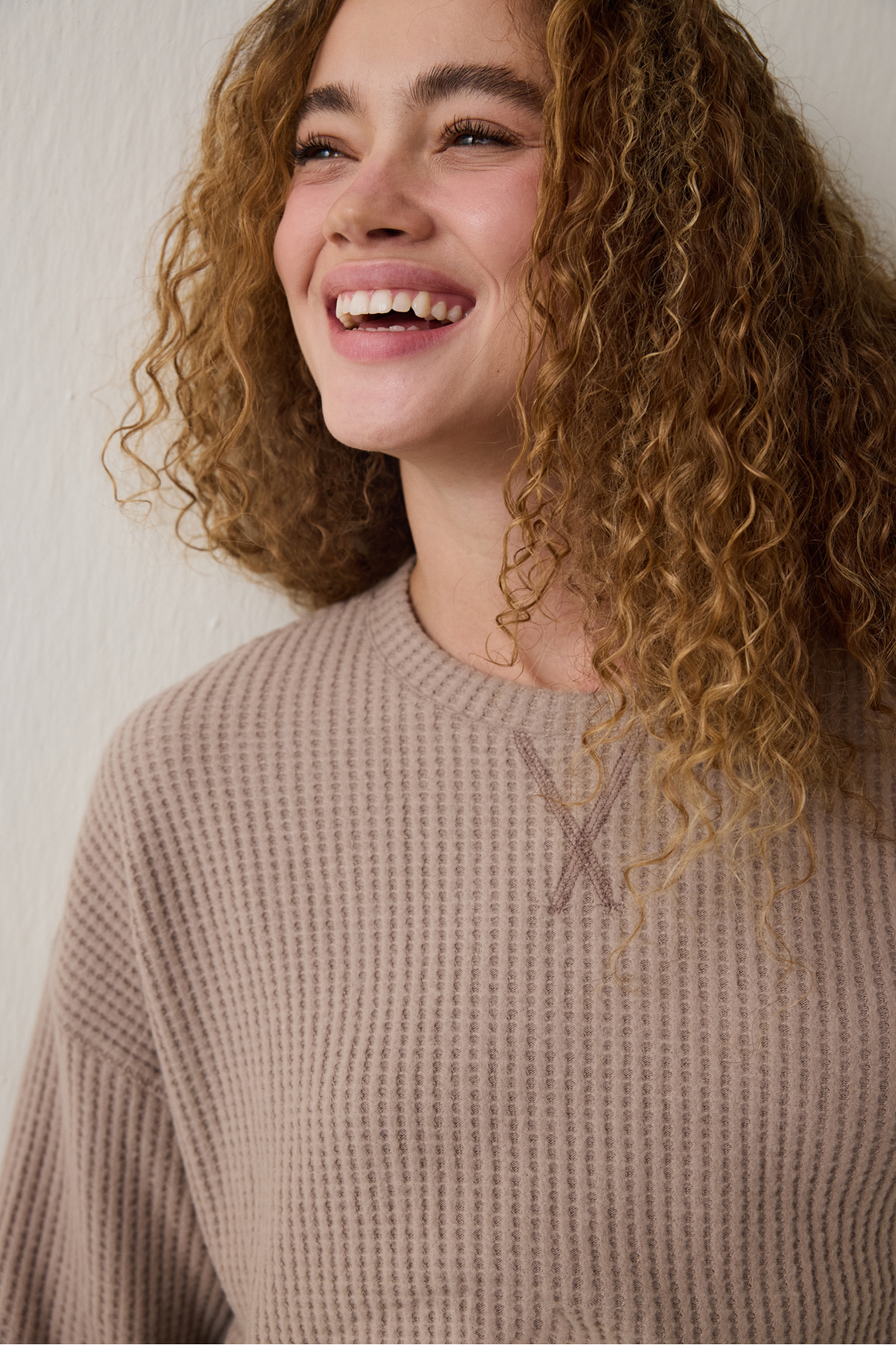 Mocha Waffle Ls Pantolon Set, takım olarak satılmaktadır.