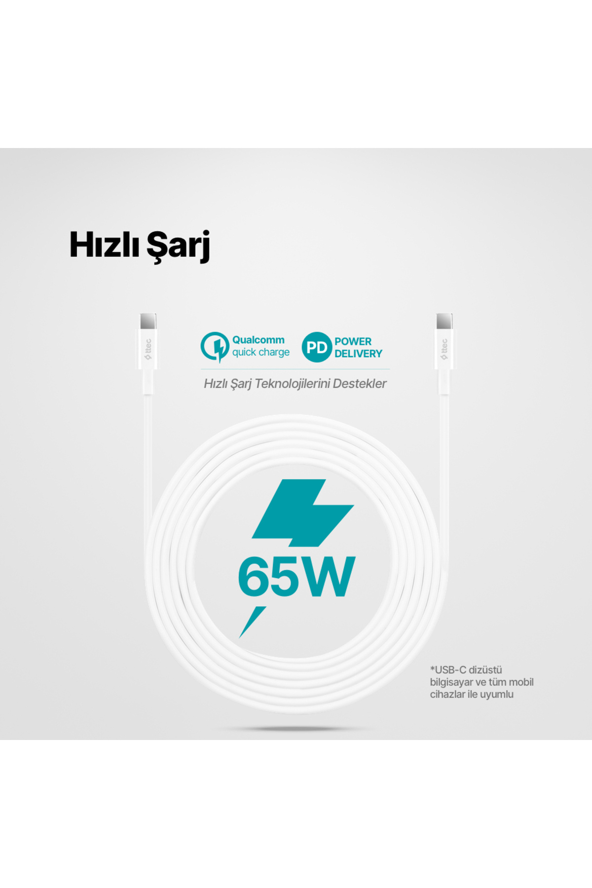 65W, 300cm ekstra uzun USB-C - USB-C kablo
