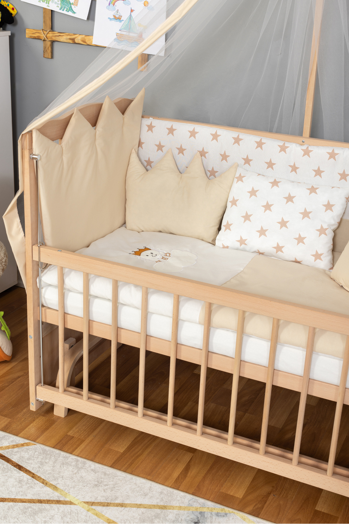 - Anne yanı kullanım tipi ile ebeveynlerin bebeğine yakın olmasını sağlar, güvenli ve huzurlu bir uyku ortamı oluşturur.