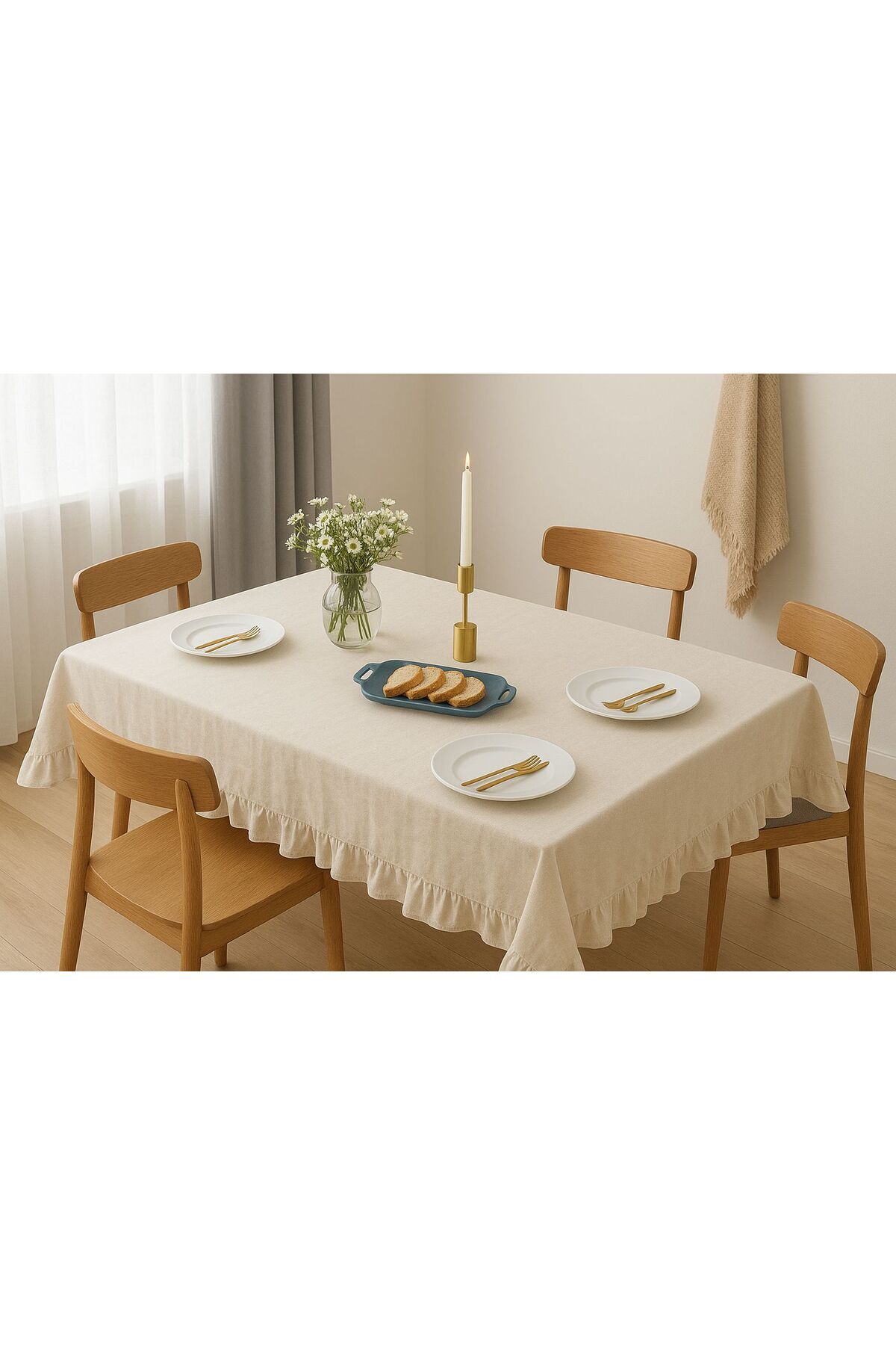 Fırfırlı Naturel Vintage Masa Örtüsü | Masa Örtüsü | Çeyizlik | İskandinav | Sade Şık Modern | İnce