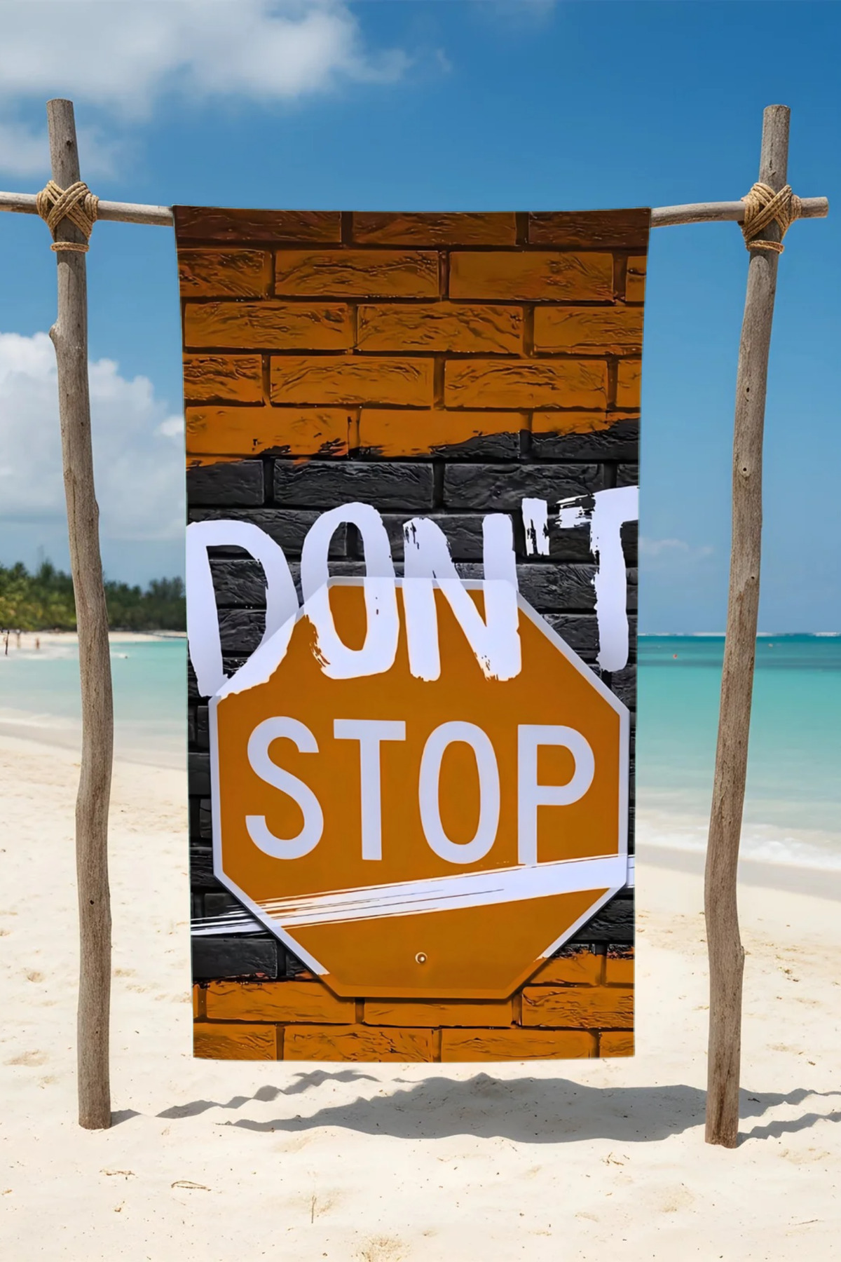 DONT STOP YAZILI Pamuk Plaj Havlusu – Desenli Tasarım – 75x150 cm