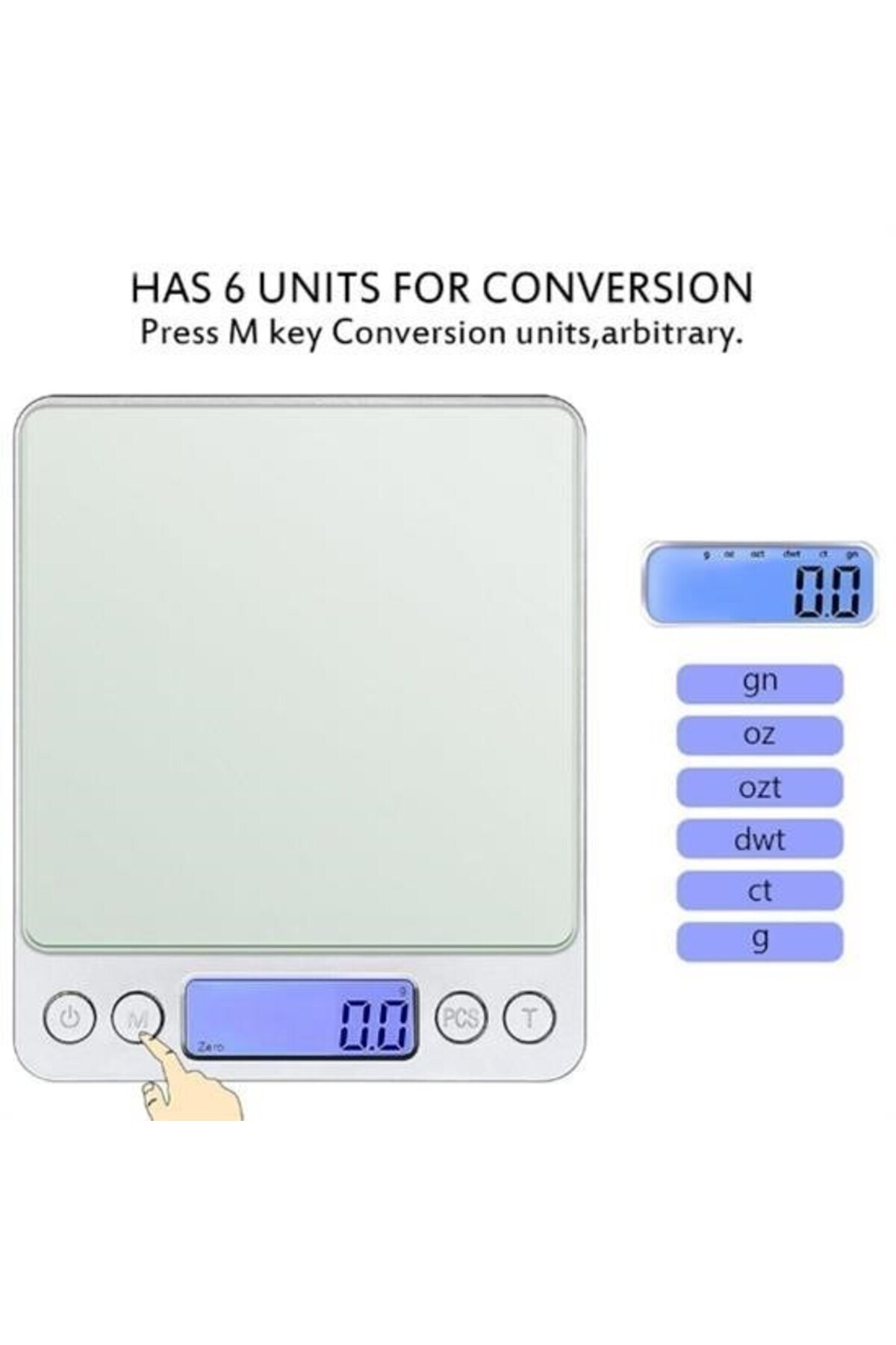 Ürün Özellikleri:Kapasite: 2000 grÖlçüm Hassasiyeti: 0.1 grGüç Kaynağı: 2 adet AAA pilOtomatik Kapanma: 1 dakikaDara ve Kalibrasyon: VarÜrün Boyutları: 13 × 11 × 2 cmÖlçüm Haznesi: 10 × 10 cmAğırlık: 230 g