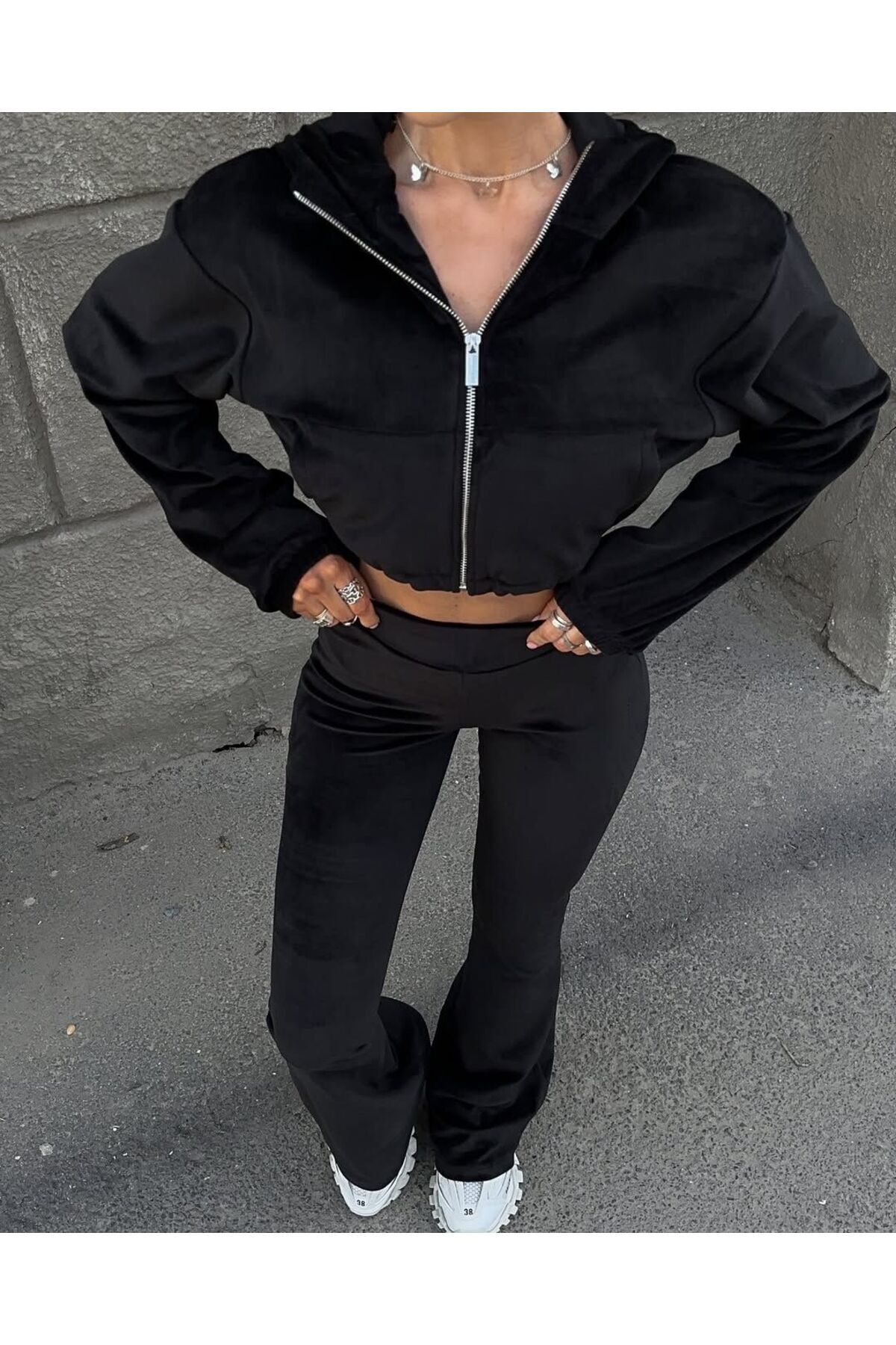 - Sweatshirt ve pantolon kombinasyonu, rahatlık ve stilin mükemmel uyumunu sunar.