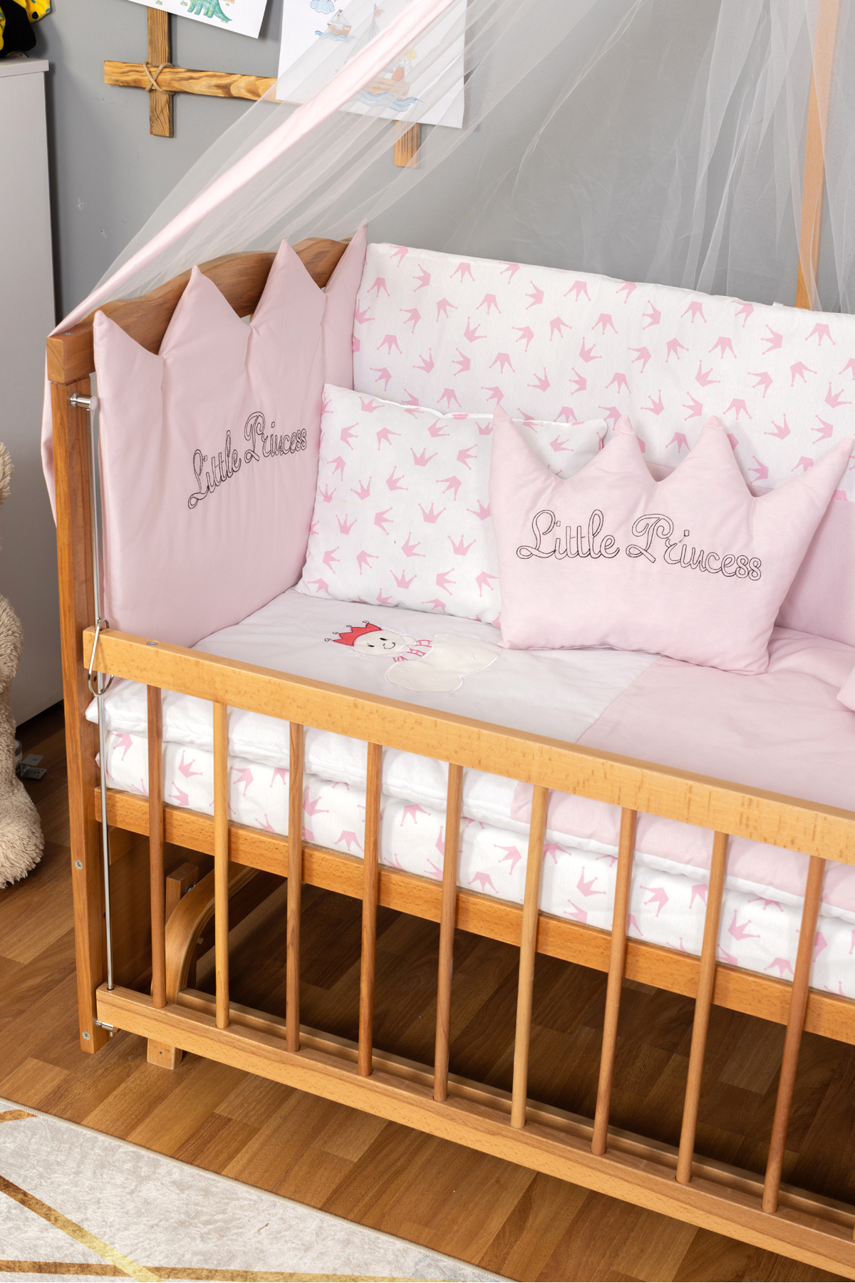 Doğal Ahşap Beşik Anne Yanı Sallanır 70X130 - NAKIŞLI Uyku Seti +Cibinlik