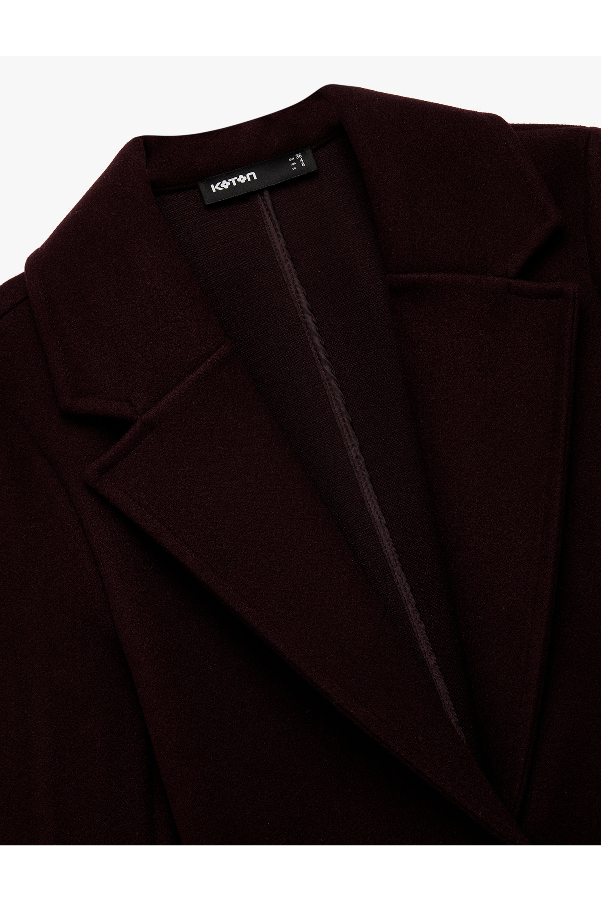 Uzun Kollu Düğmeli Cepli Kruvaze Uzun Kaşe Kaban