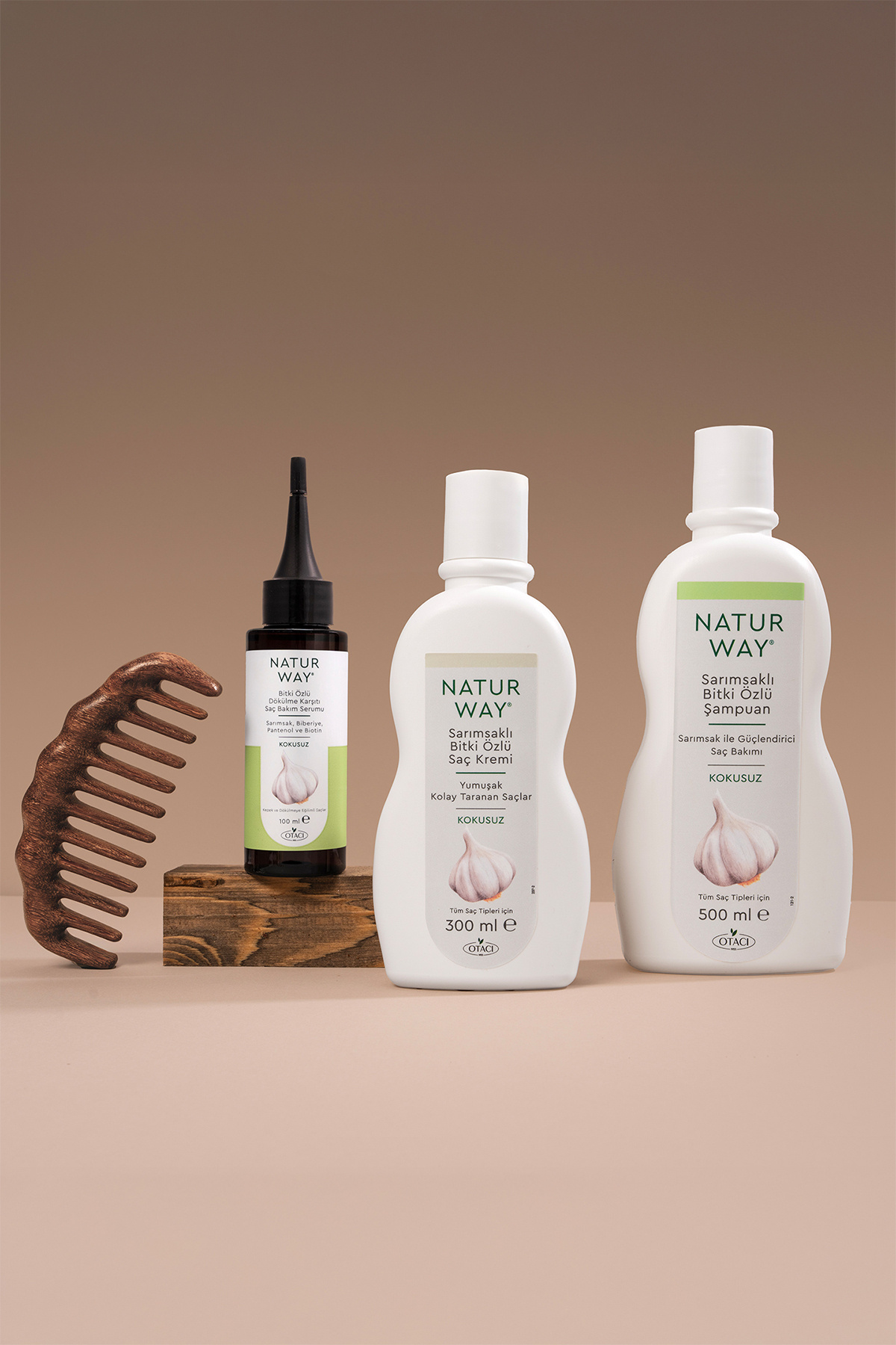 Naturway Sarımsaklı Bitki Özlü Saç Kremi 300ml Boyut: 300ml Bileşimindeki sarımsak ile saç tellerinizi onarır ve güçlendirirken, içeriğindeki pancar özü saçlarınızdaki nemi hapseder ve saçlarınız güçlü, kolay taranan, yumuşak ve sağlıklı bir görünüme kavuşur.