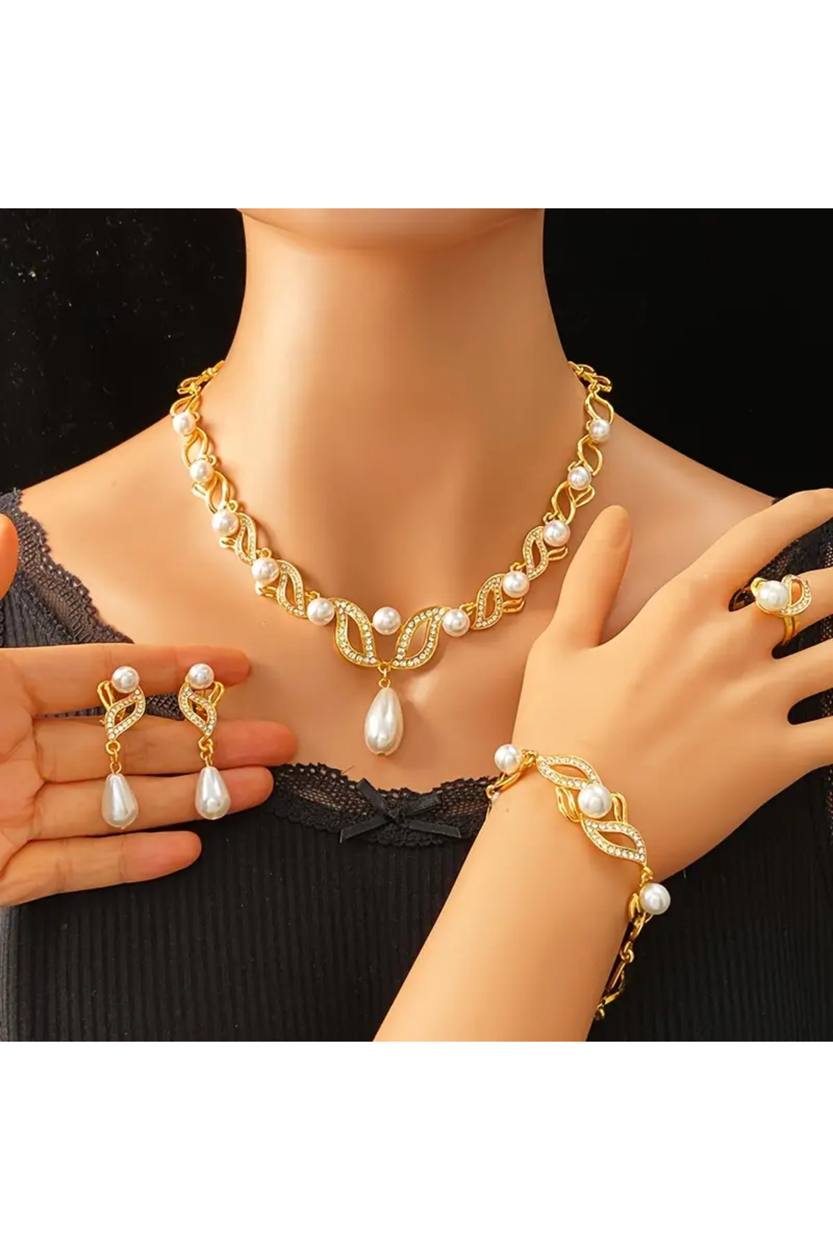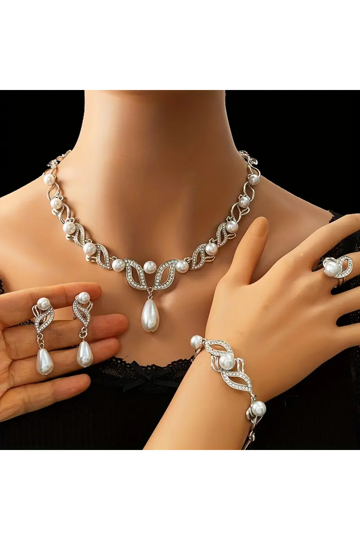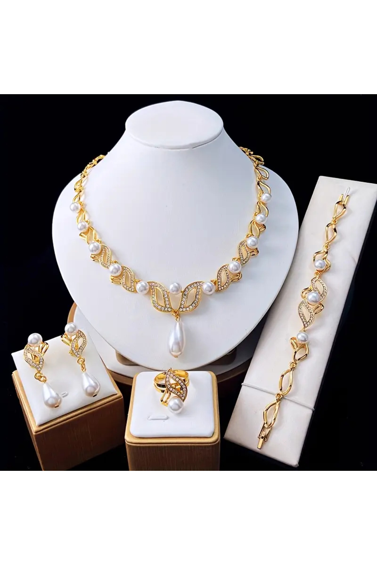 - 5 parçadan oluşan set içeriği ile kolye, bileklik ve küpe kombinasyonu sunar.