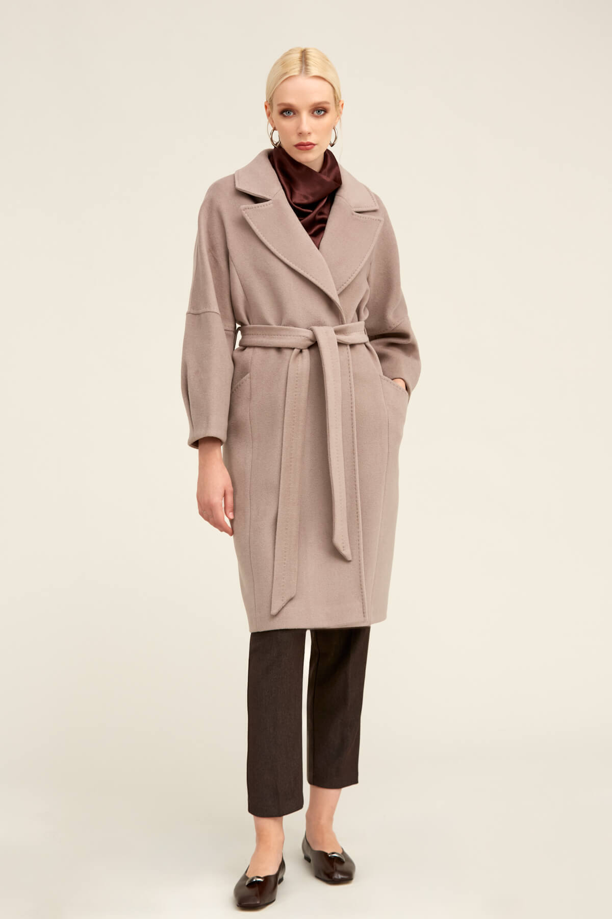 Saykı Woman Taş Regular Fit Ceket Yaka Kaşe Yünlü Oversize Manto