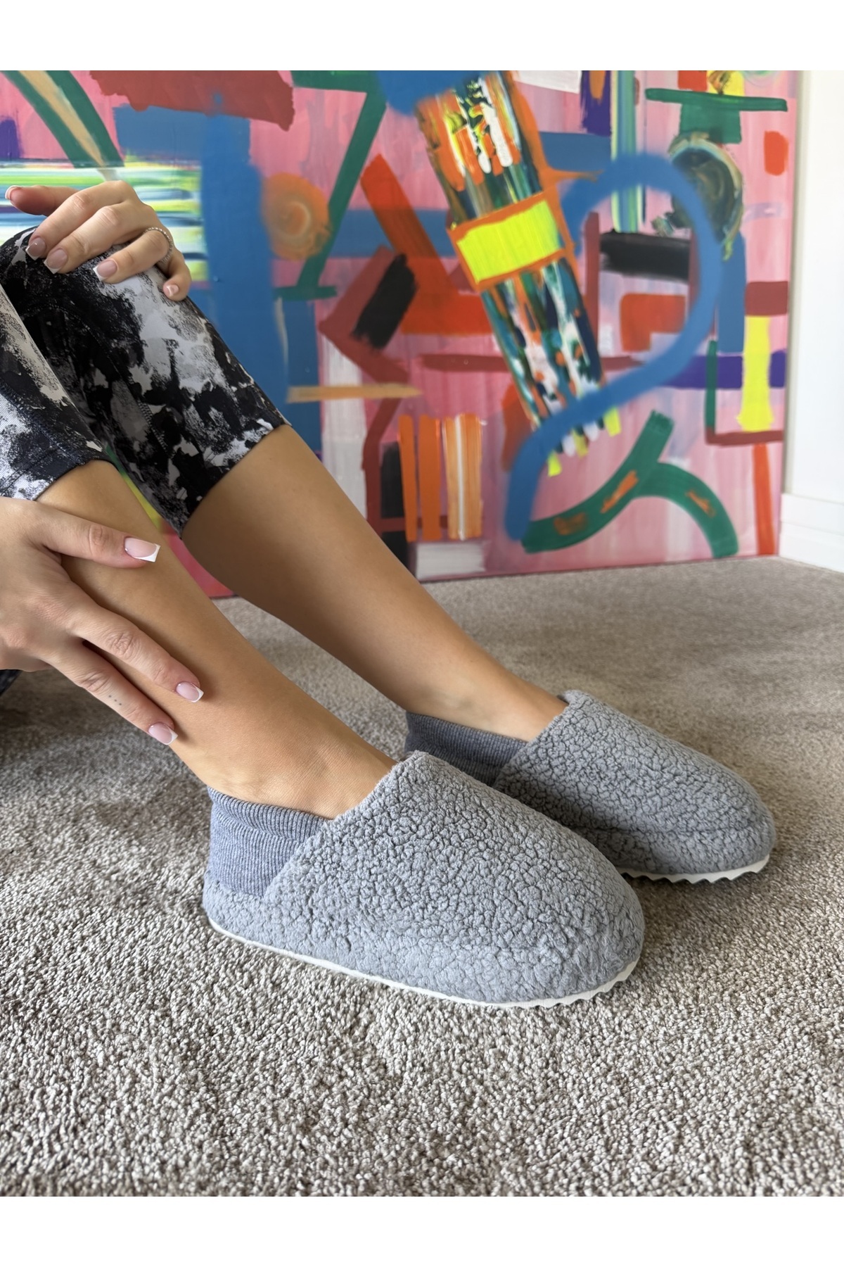 Kadın Sessiz Taban Çok Yumuşak ve Hafif Arkası Lastikli Peluş Ev Botu