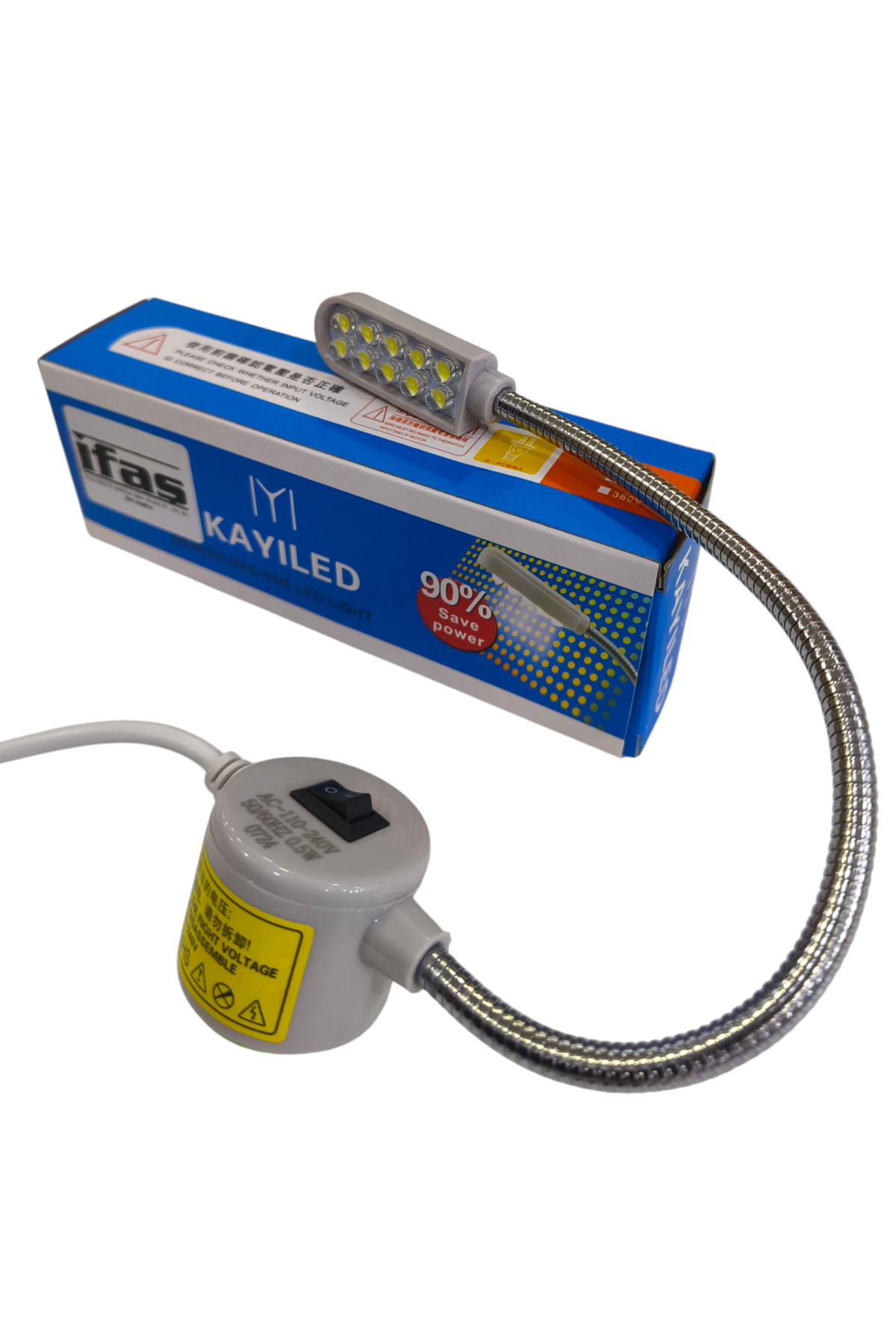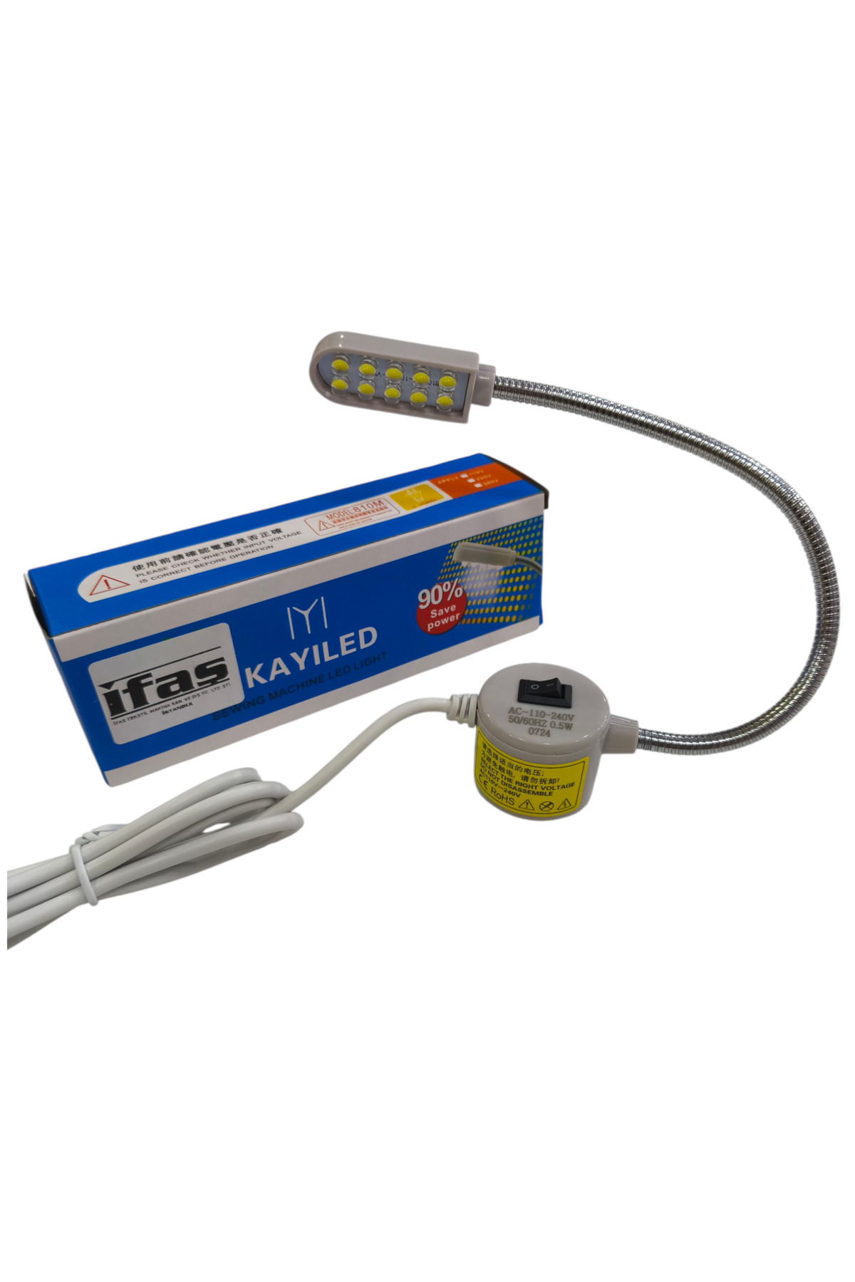 - Esnek boyun tasarımı sayesinde, dikiş makinesi etrafında kolayca konumlandırılabilir ve istenilen açıya getirilebilir.
