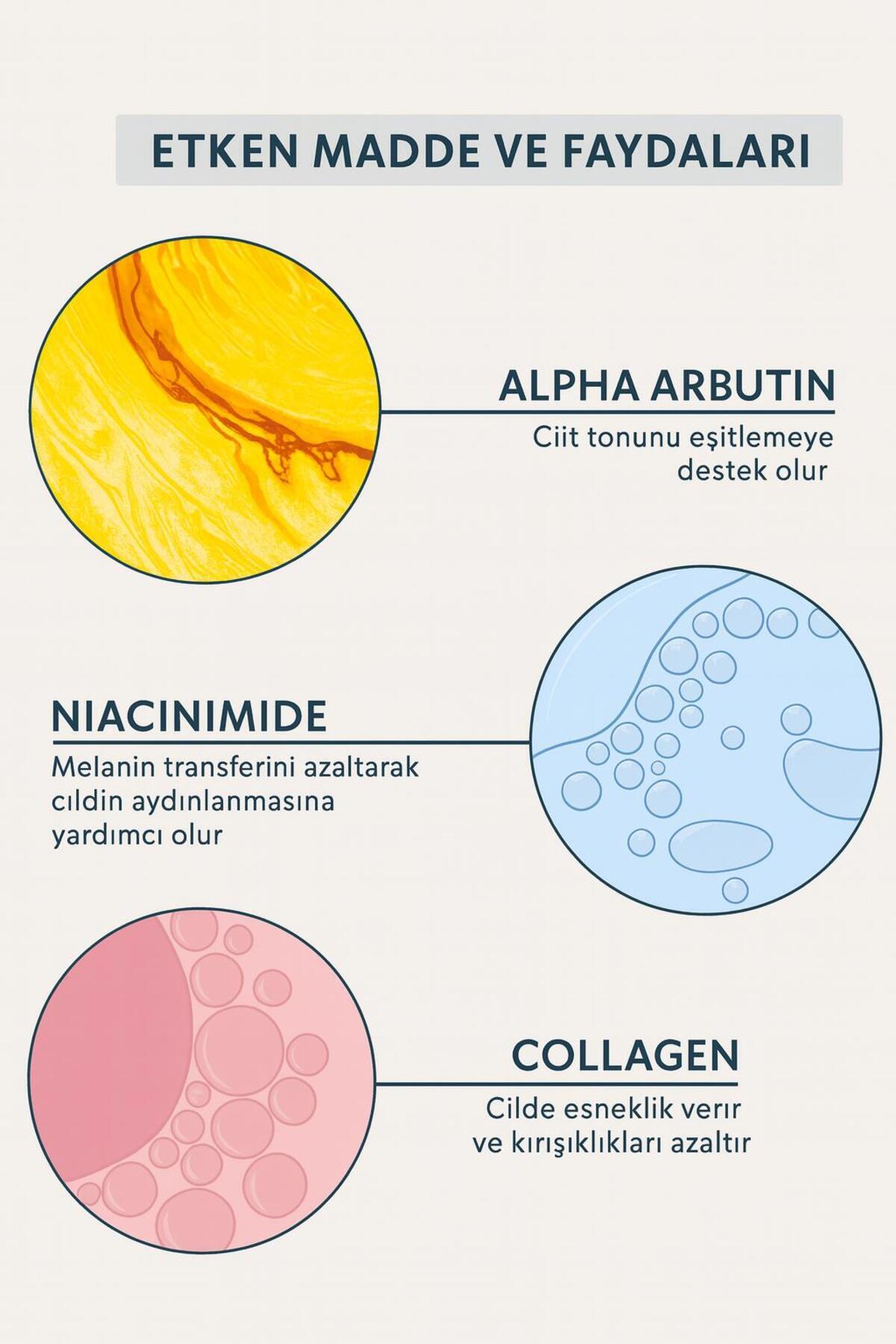 Leke karşıtı formülü sayesinde cilt tonu eşitsizliklerini hedef alır ve daha pürüzsüz bir cilt görünümüne katkıda bulunur.
