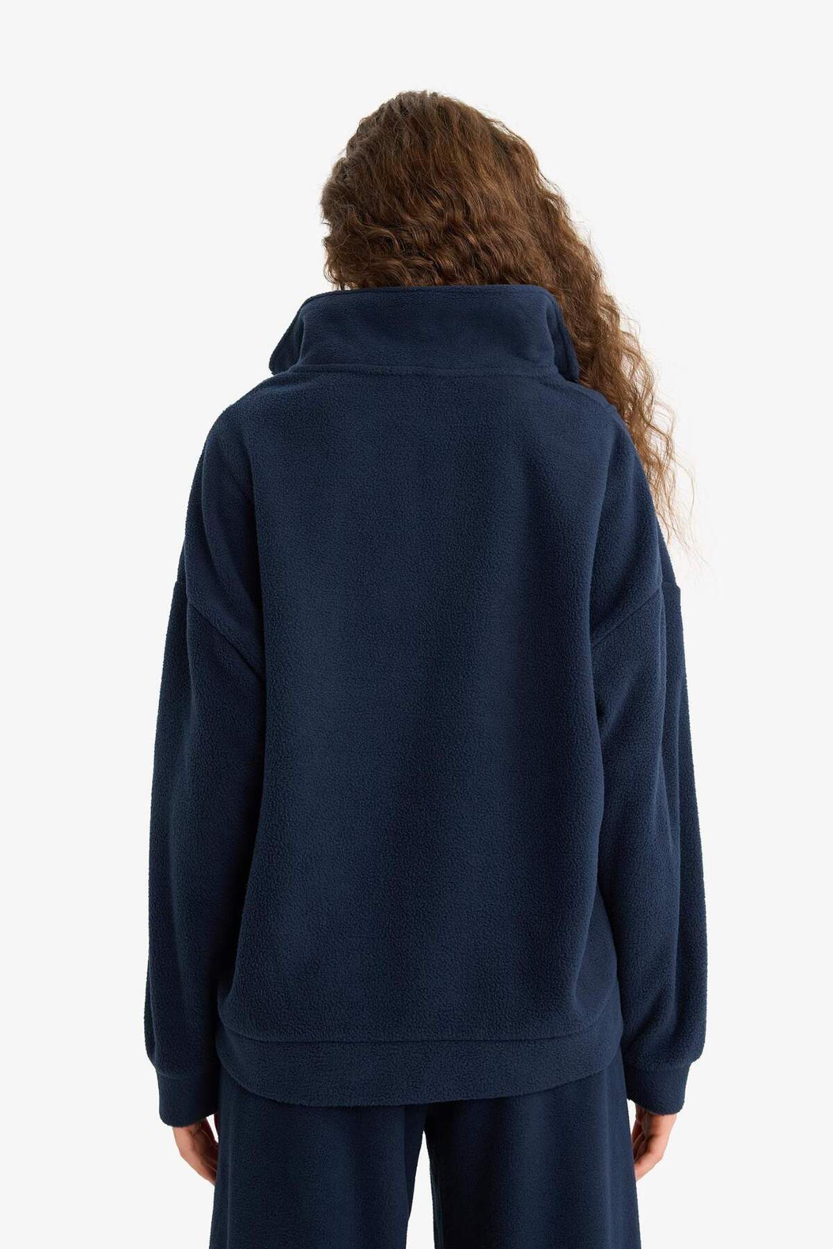 Oversize geniş kalıbı ve dik yaka fermuarlı tasarımıyla bu baskılı polar sweatshirt, rahatlık ve şıklığı bir arada sunar.