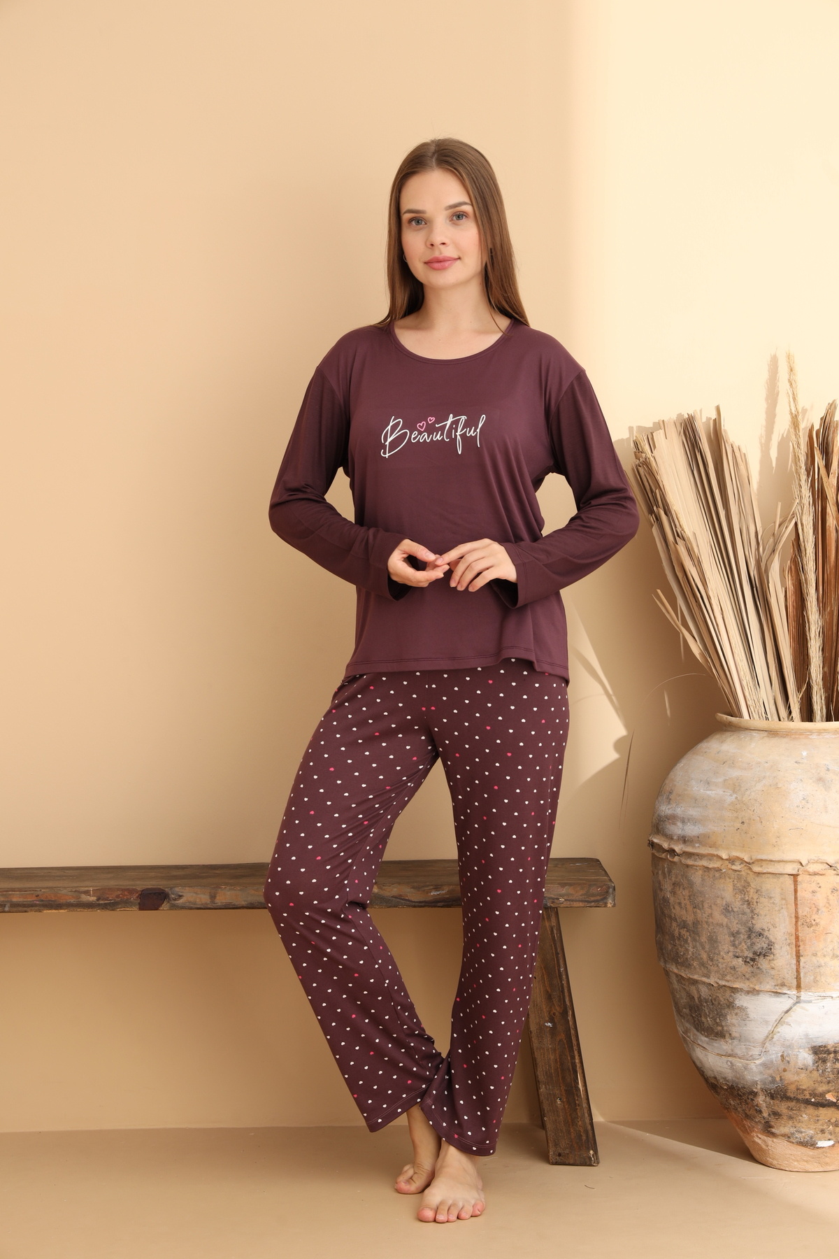 Beautiful Bordo Pijama Takımı, zarif bordo tonuyla şıklığı ve rahatlığı bir araya getiriyor.