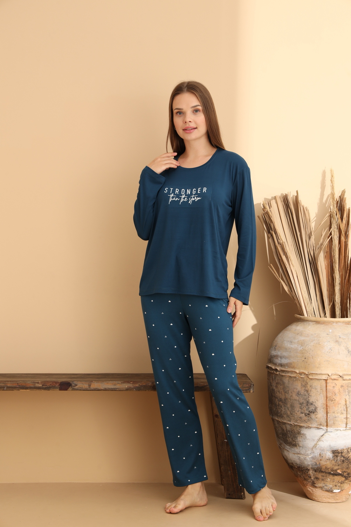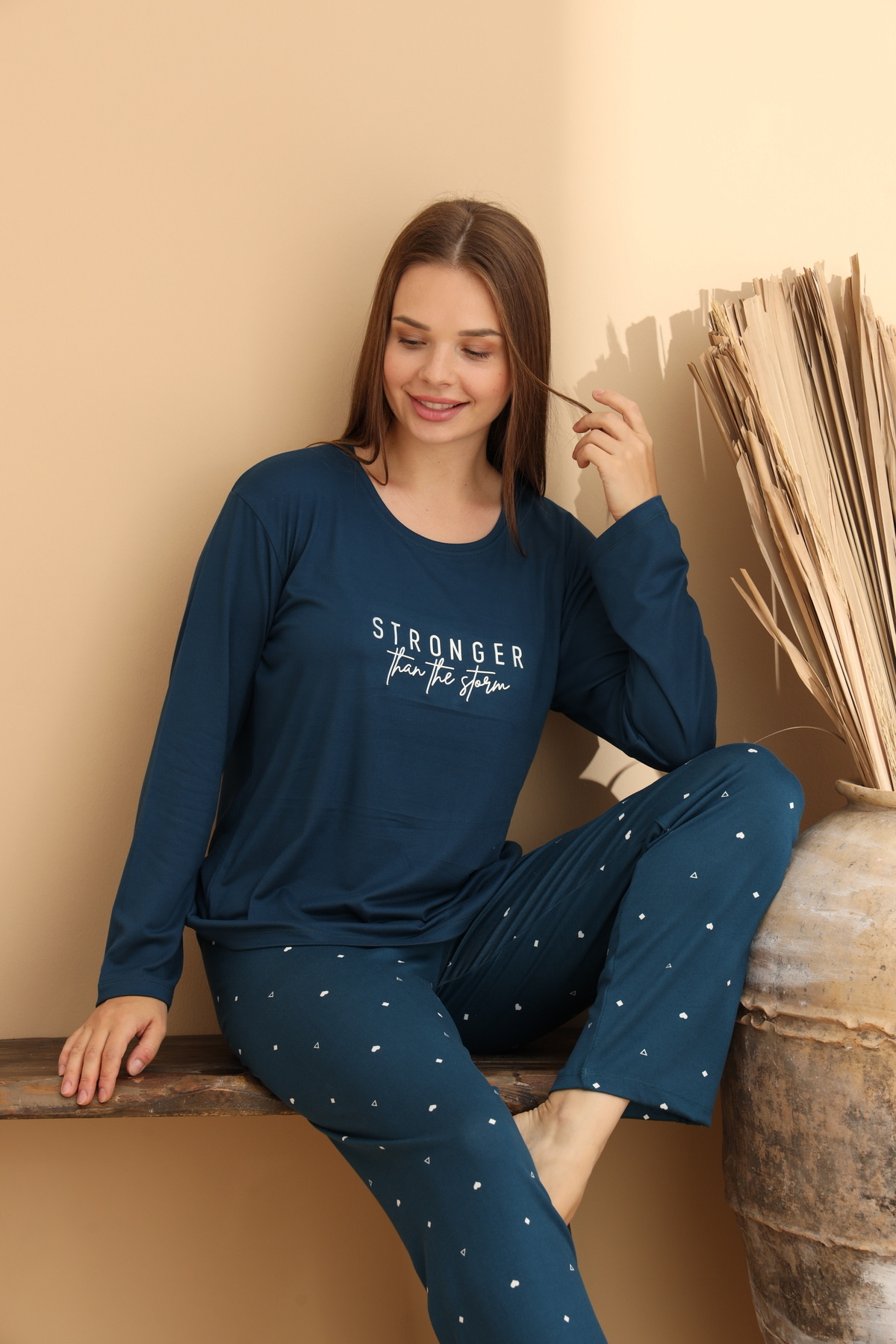 Stronger Lacivert Pijama Takımı, sade tasarımı ve güçlü duruşuyla ev şıklığını konforla buluşturuyor.