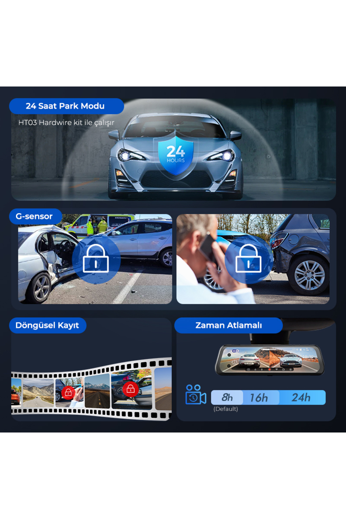 AR09 4K 2 Kanallı 9.6" Ekran Tam Ayna Dokunmatik Araç Kamerası