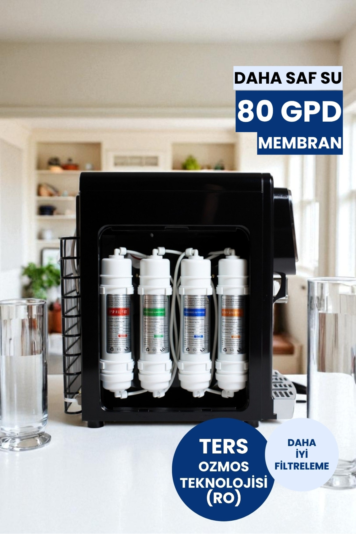 - 80 GPD RO teknolojisi ile suyunuzu saf ve temiz bir şekilde içme imkanı sunar.