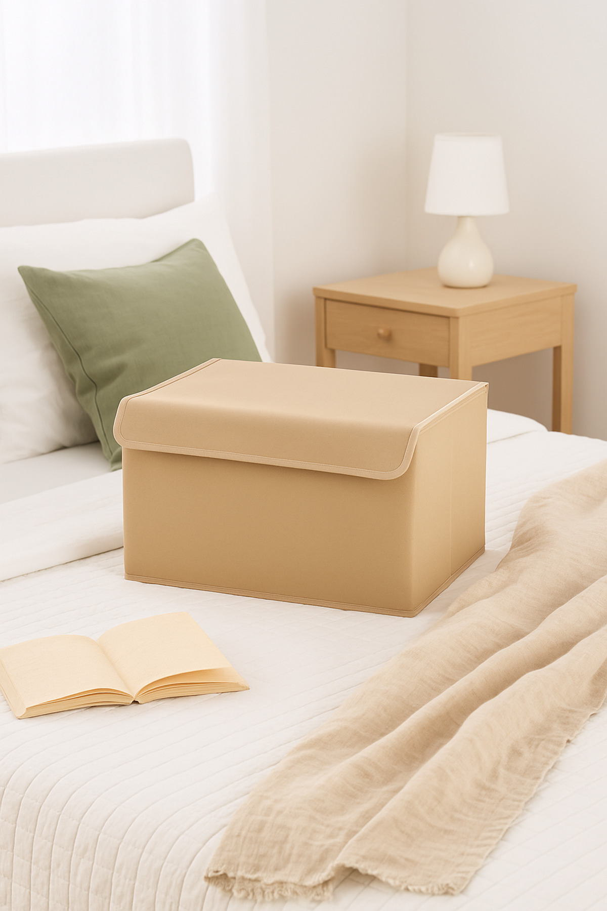 40x30x25 cm boyutlarındaki bu küçük boy saklama kutusu, kıyafet ve battaniye gibi eşyalarınızı düzenli bir şekilde saklamanızı sağlar.