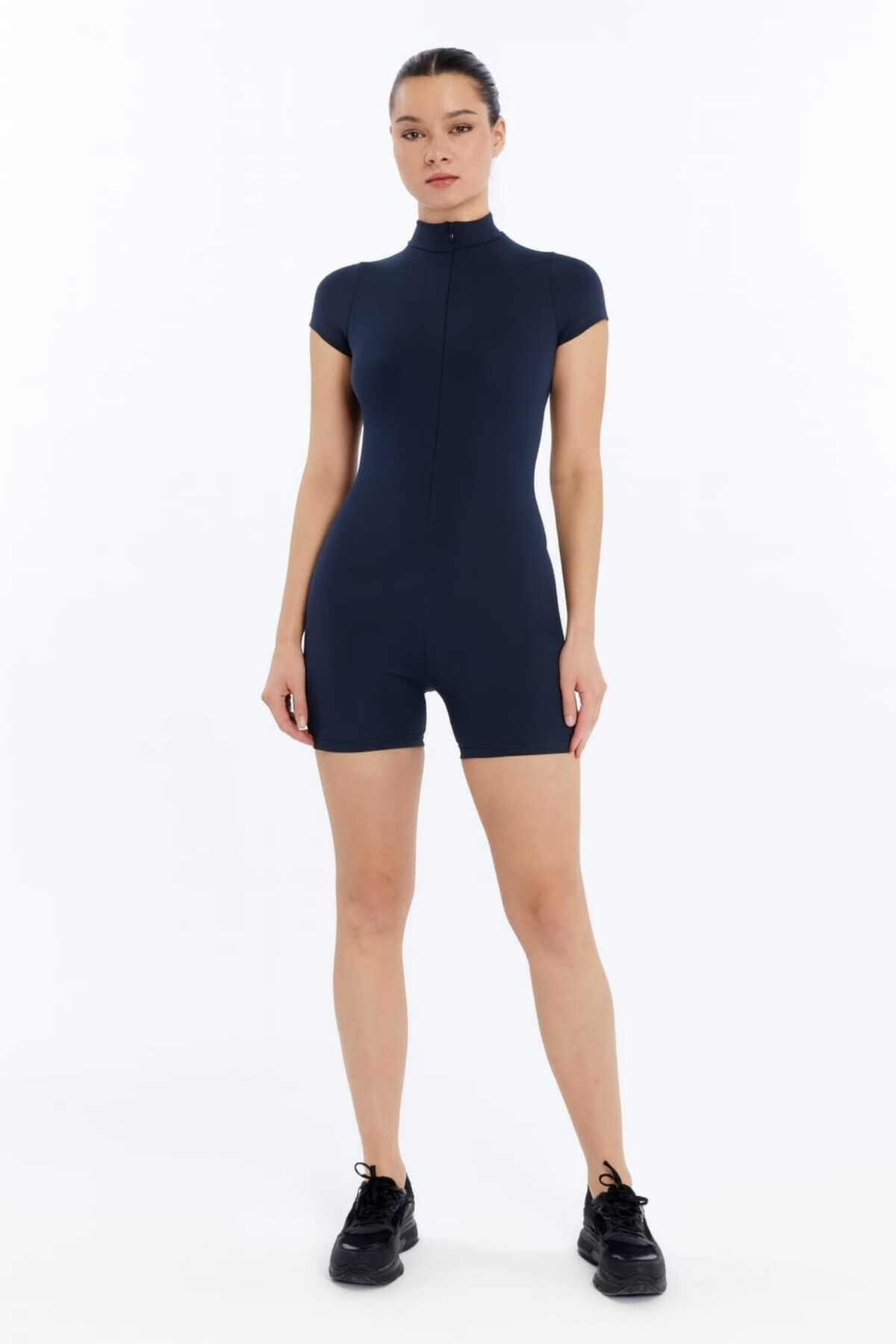 Lacivert Mayo Şort Tulum Fermuarlı Spor Günlük Kullanım