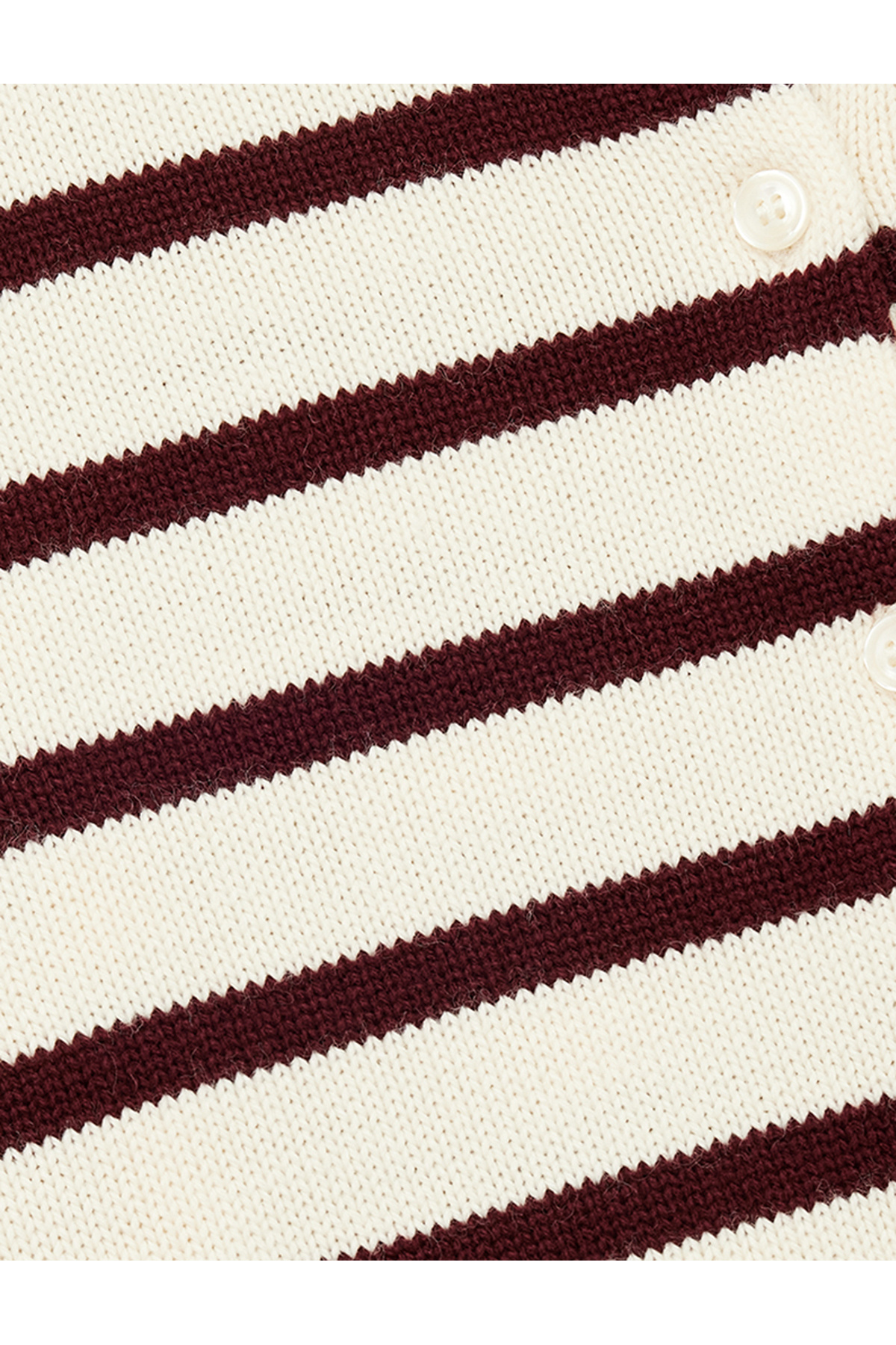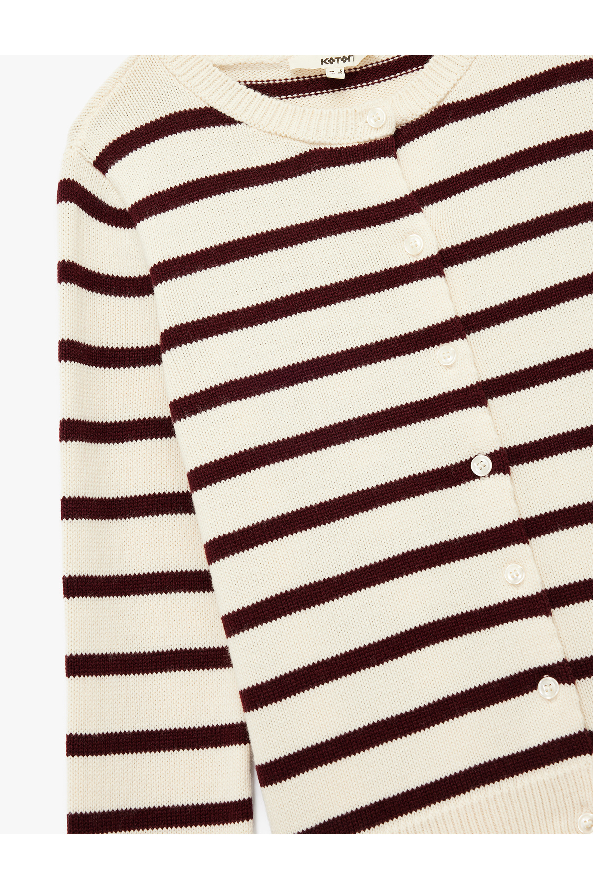 Uzun Kollu Düğmeli Bisiklet Yaka Çizgili Triko Hırka