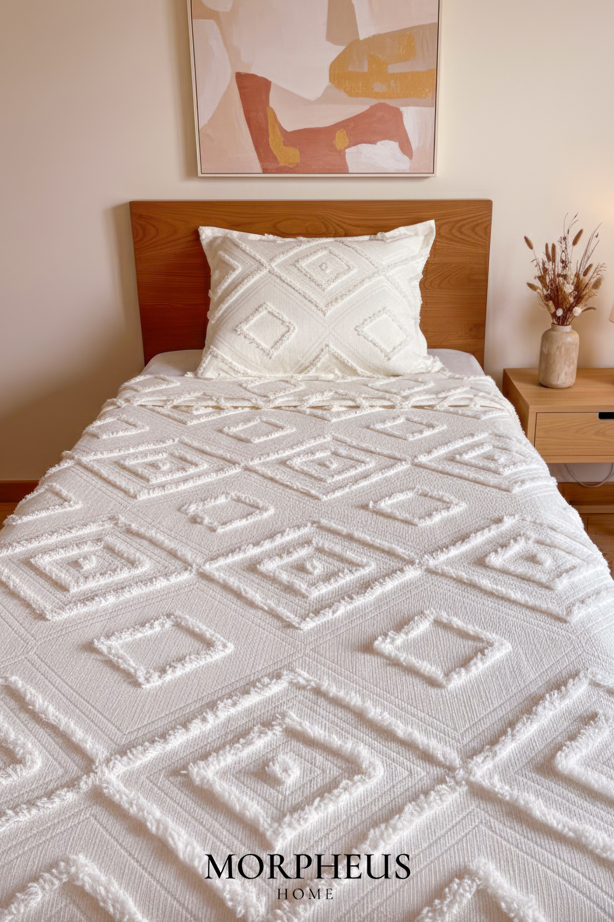 İskandinav Püsküllü Tek Kişilik Yatak Örtüsü Antrasit 180 x 250 Tek Yastık