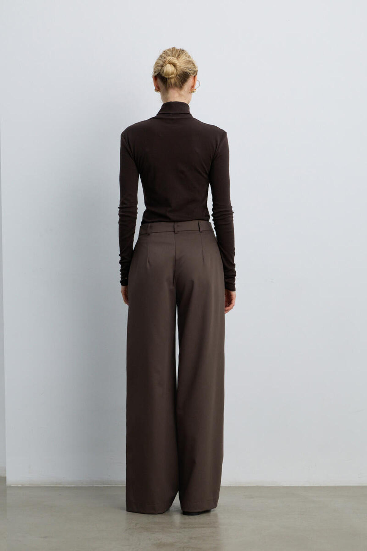 TOZLU KAHVE NERVÜRLÜ GENİŞ PAÇA PANTOLON