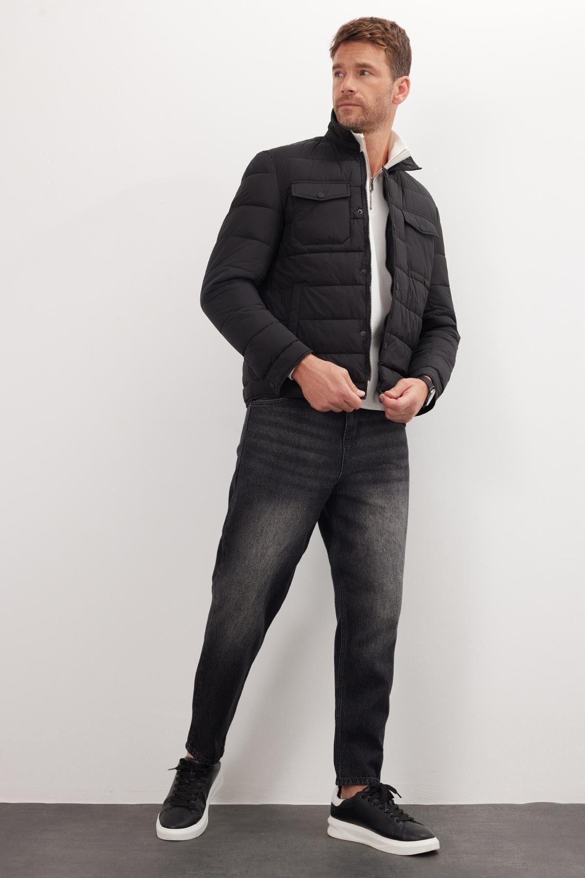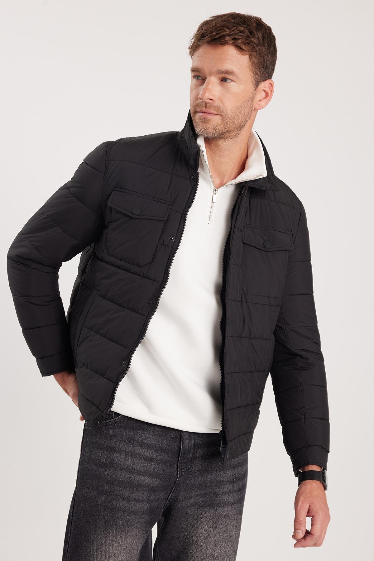 Erkek Regular Fit Klasik Kesim Çift Cepli Çıtçıt Kapamalı Siyah Mont
