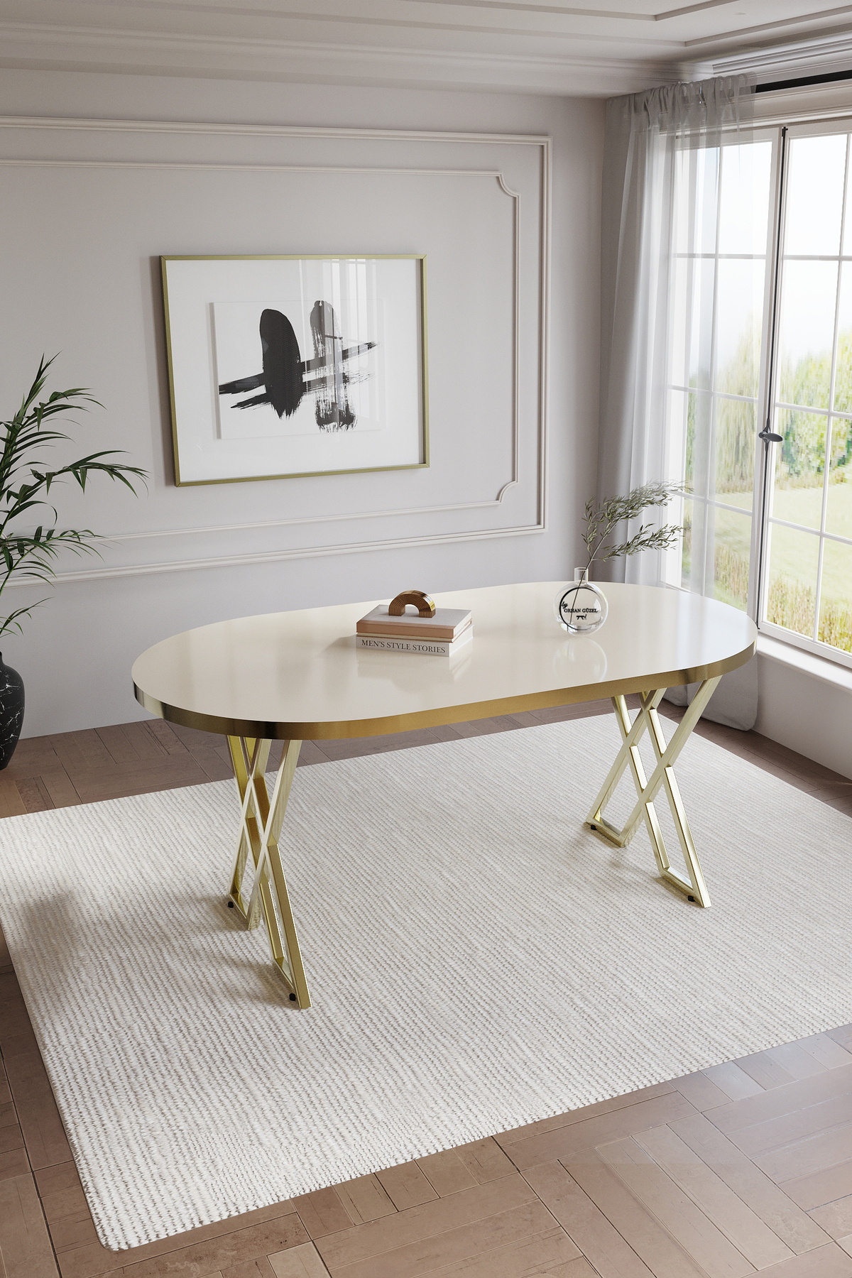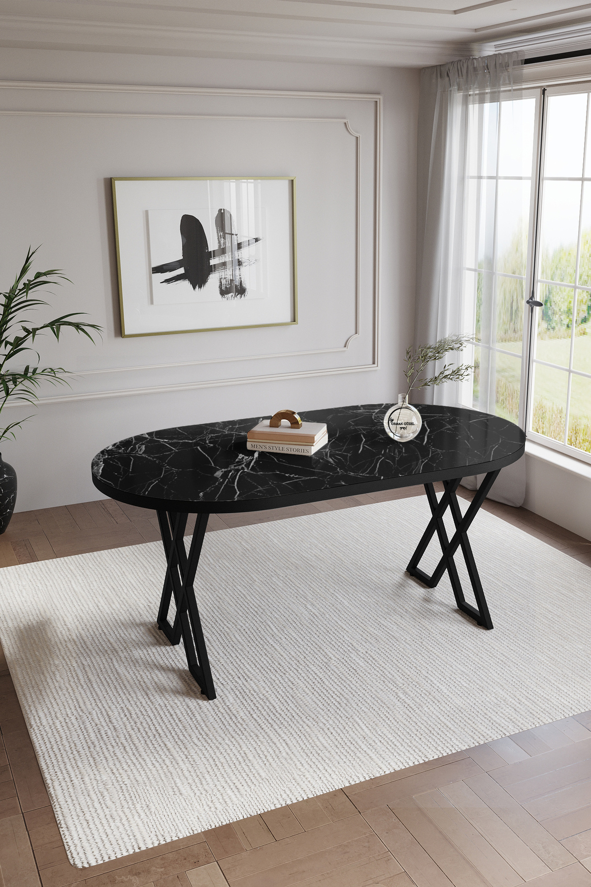 - Oval şekliyle mekanınızda zarif bir görünüm oluştururken, dört kişiyi rahatça ağırlayabilecek genişlikte bir masadır.