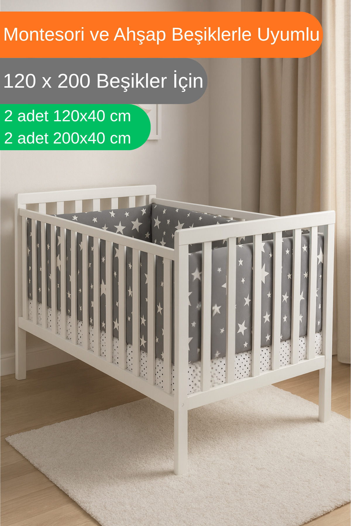 - 4 parça tam set: Beşiğinize kolayca uyum sağlayacak şekilde tasarlanmış 4 parçadan oluşan set, beşiğin yanlarını güvenli bir şekilde korur.