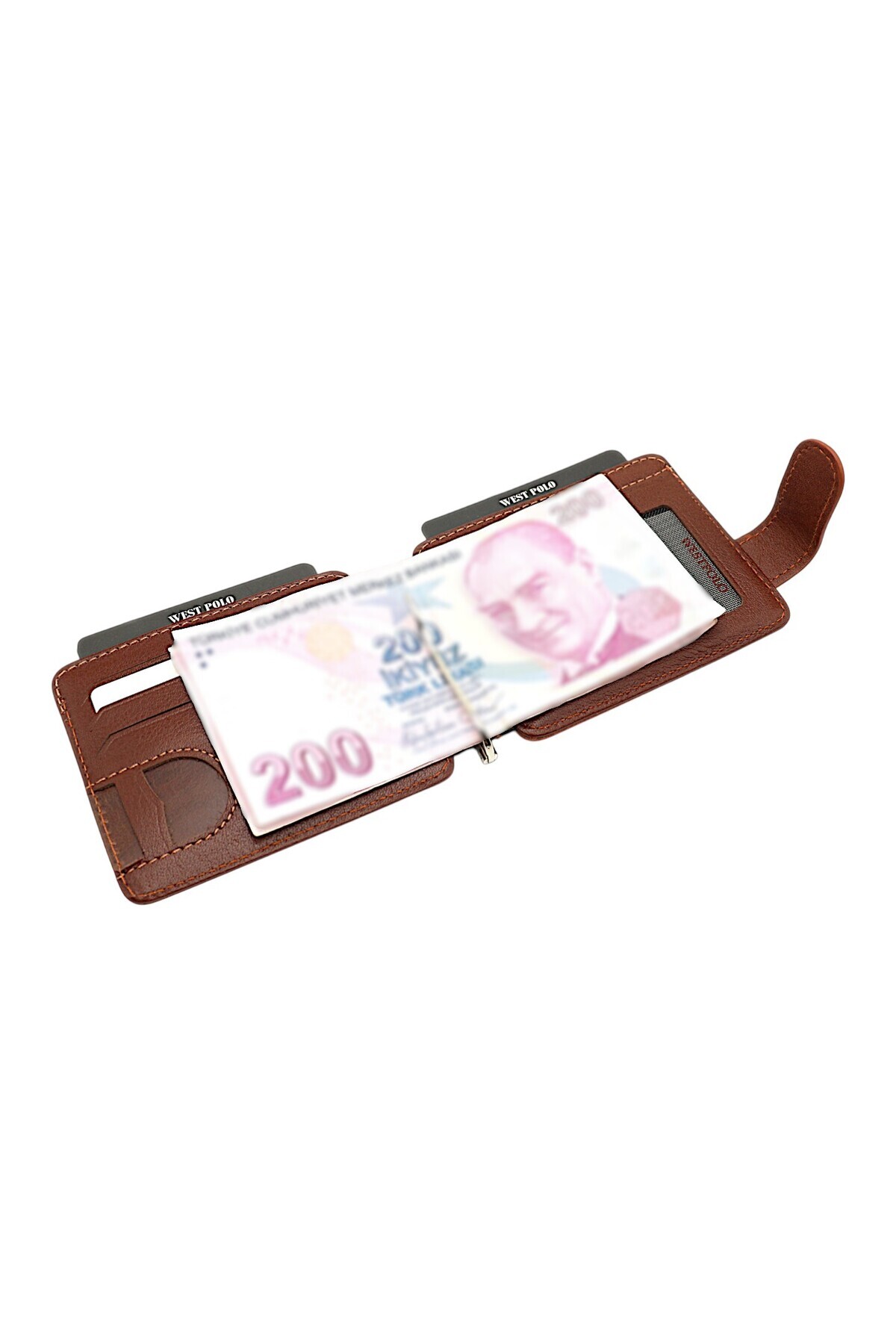 Hakiki Eskitme Deri Kuşaklı Kağıt Para Klipsli Unisex Kartlık - Taba