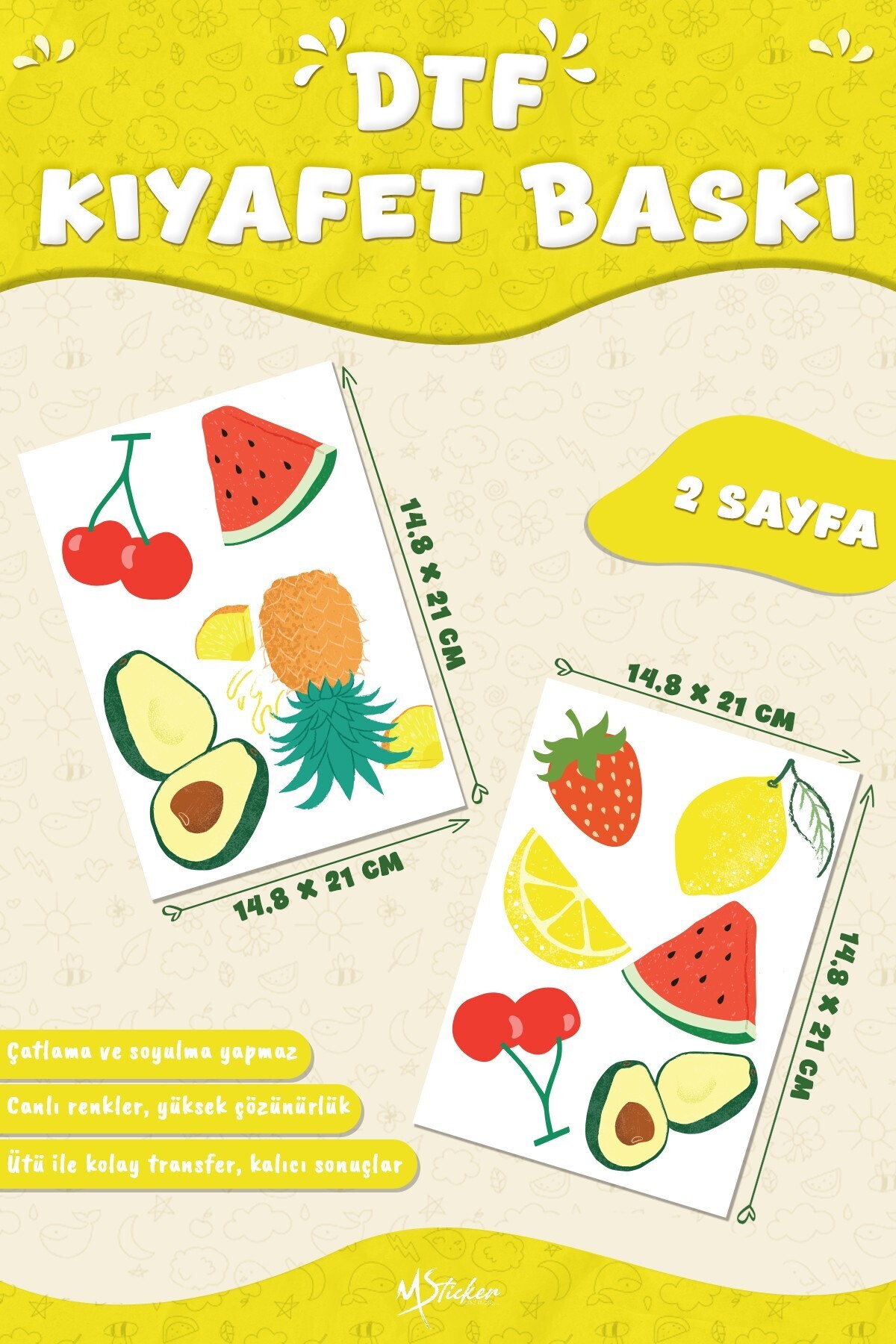 Kumaşa Baskı Yapılabilen Özel Tasarım Ütü Ile Yapışan Tekstil Dtf Baskı Görseli Meyveler 2 Temalı
