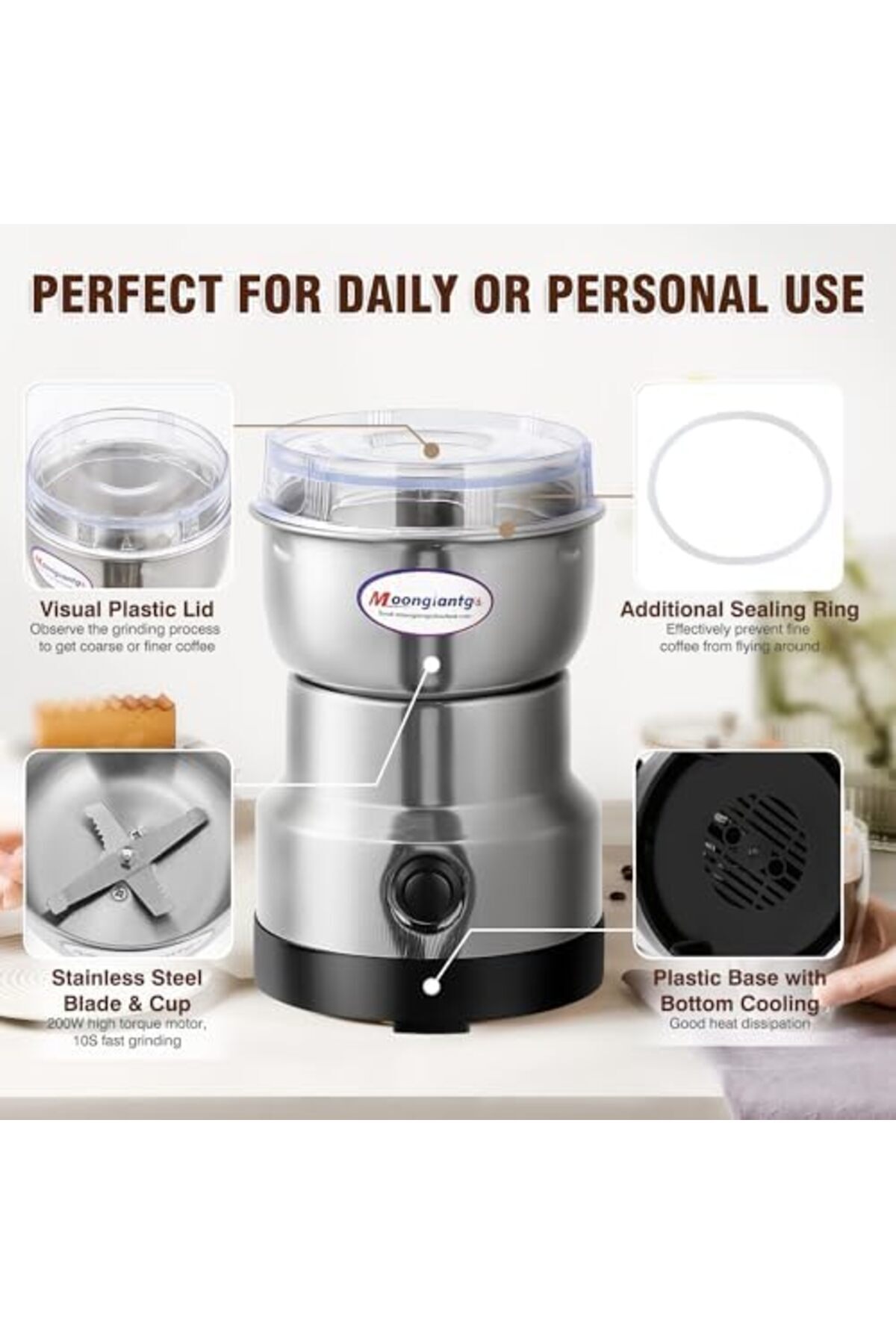【Taşınabilir Küçük Boy, 200W Motor】Elektrikli kahve değirmenimiz tek elle tutulabilir ve kompakt tasarımı minimum tezgah alanı kaplar, ayrıca bir dolap veya çekmecede saklanabilir.