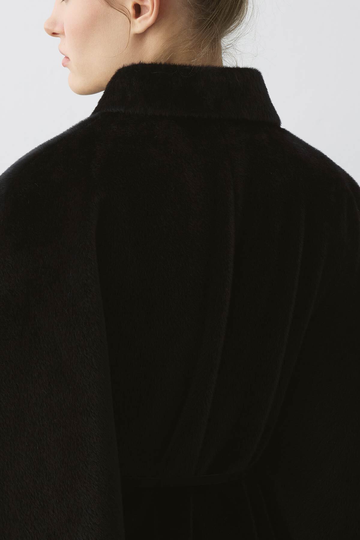 Süet Kemer Detaylı Pelerin Siyah Kaban