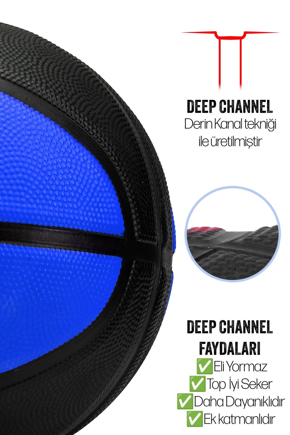 Strong Basketbol Topu Pompalı Full Kauçuk Dayanıklı Deep Channel Kabartma No:7 B12 Mavi