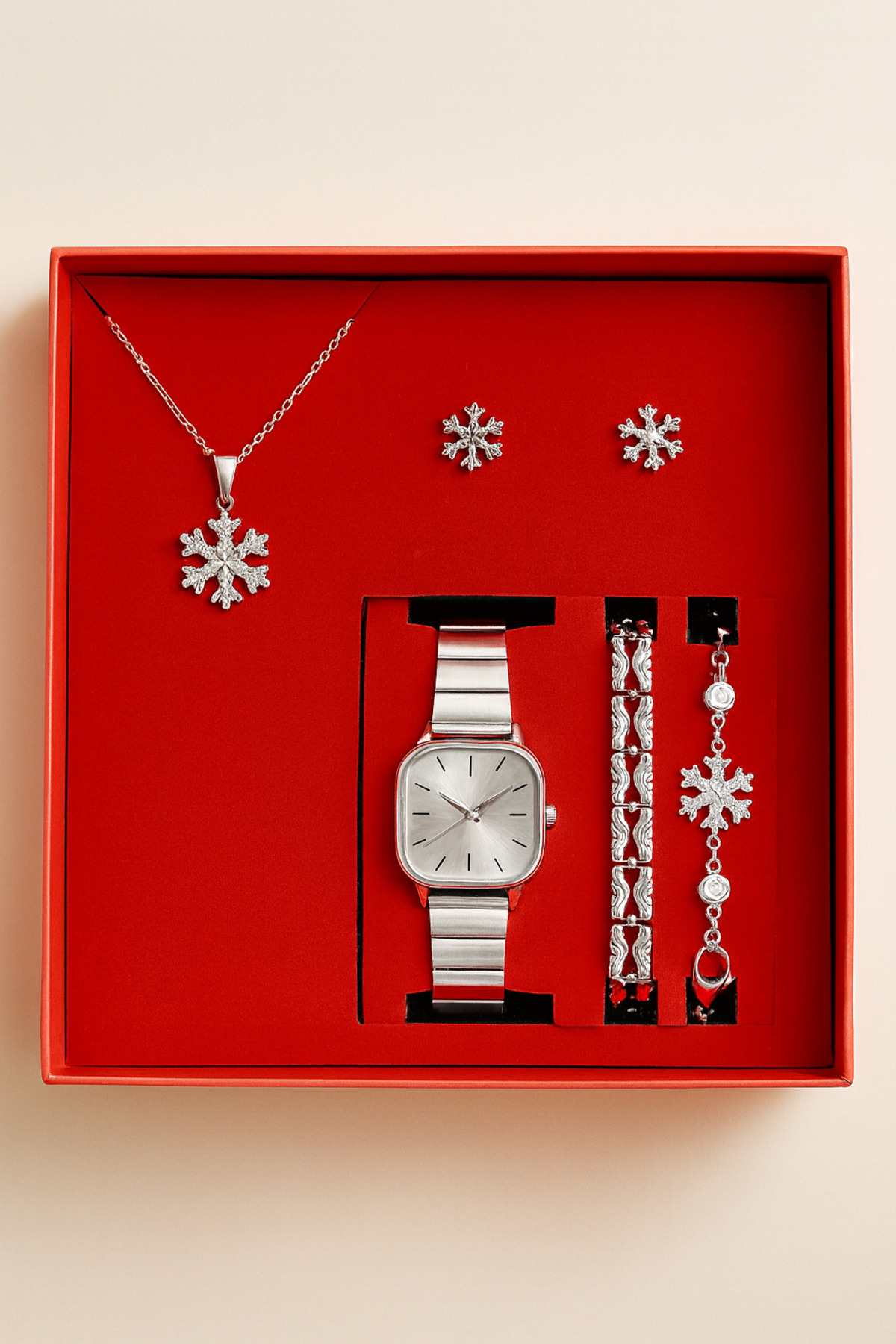 - Bu hediye seti, bileklik, kolye ve küpe gibi tamamlayıcı aksesuarlarla birlikte gelir