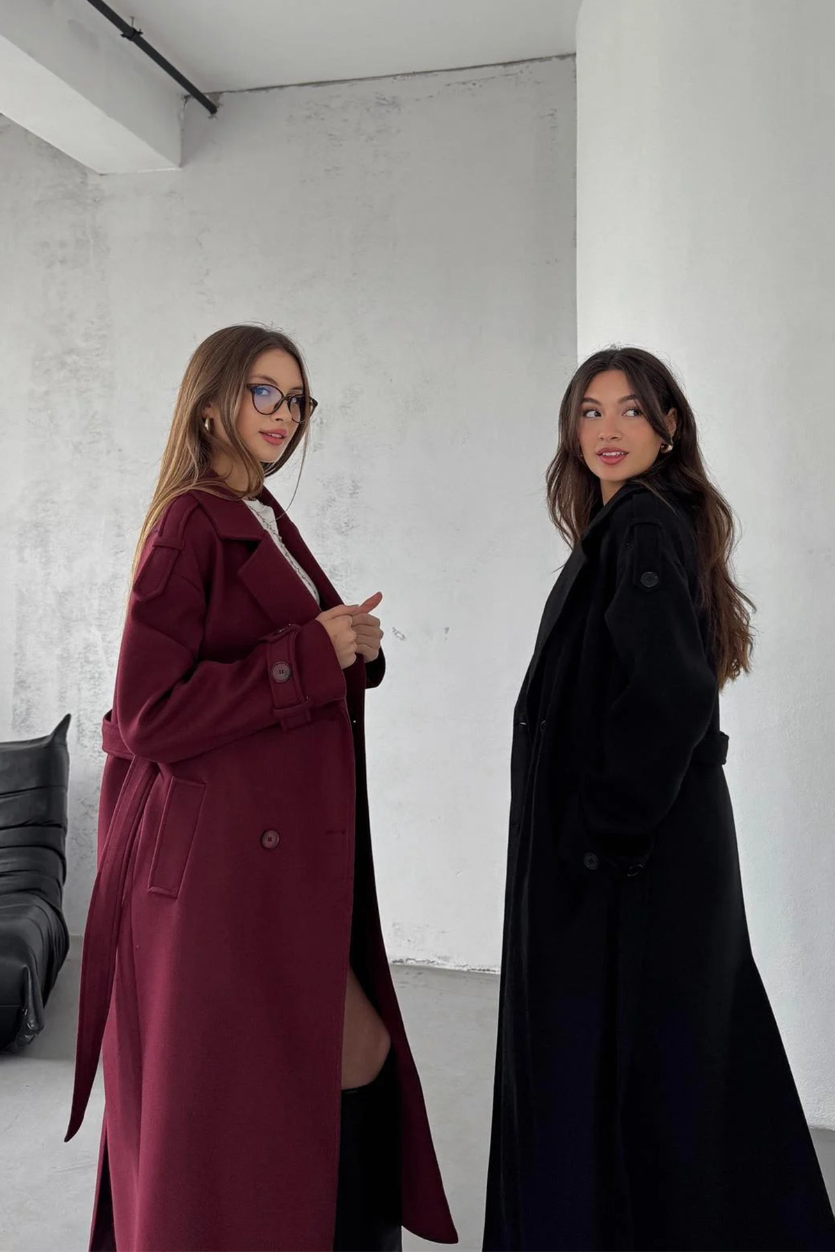 - Yeni sezonun trendlerini yansıtan bu kaban, düz kesimiyle modern ve zarif bir görünüm sunar.
