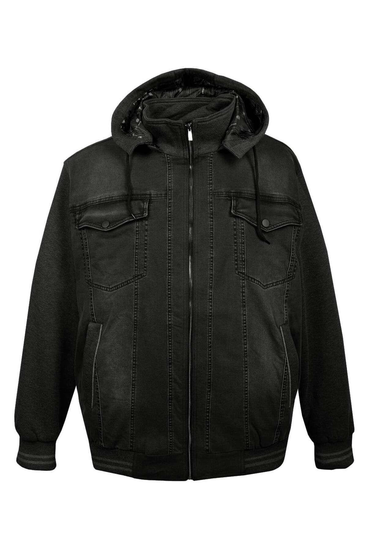 Büyük Beden Parçalı 3 İplik Kapüşonlu Kot Mont (Geniş Rahat Kalıp)