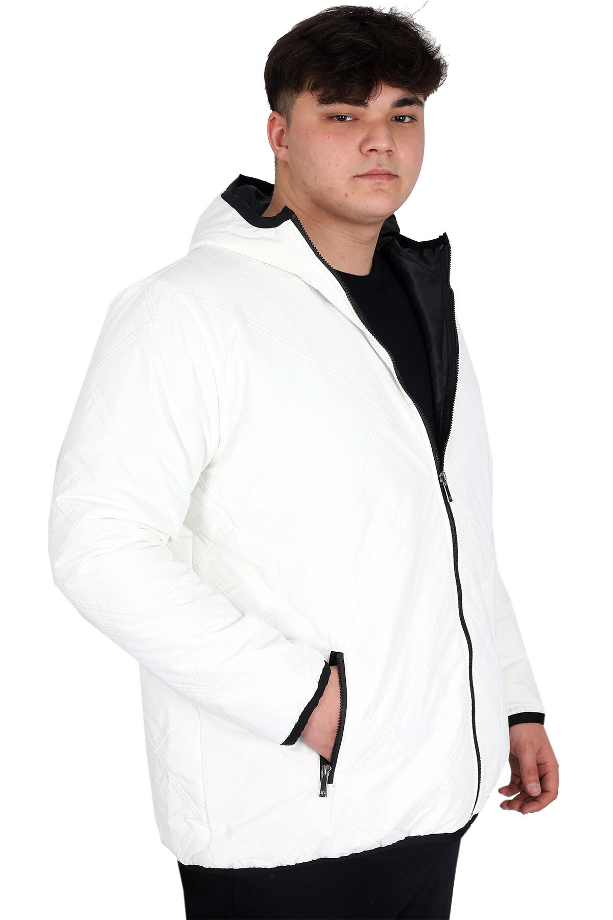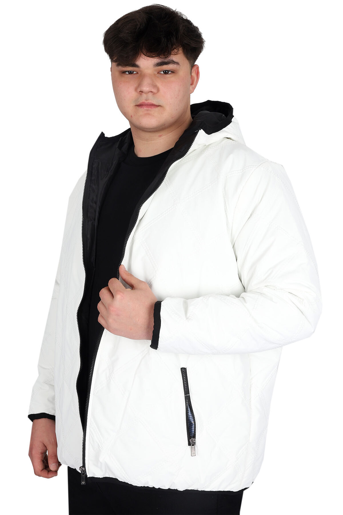 Mode XL Büyük Beden Erkek Mont Kapüşonlu U24608 Ekru