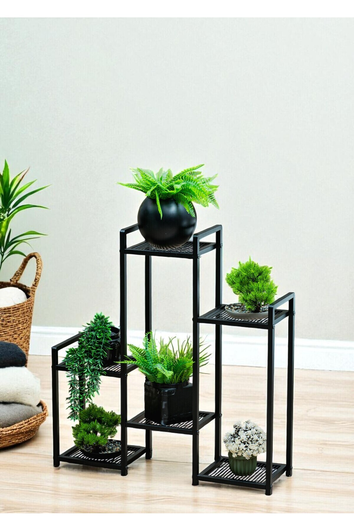 - 6 raflı tasarımı sayesinde birden fazla saksıyı aynı anda sergileme imkanı sağlar, bitkileriniz için geniş bir alan sunar.