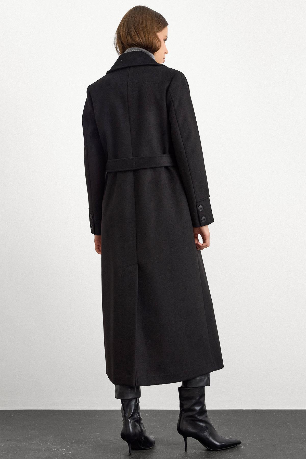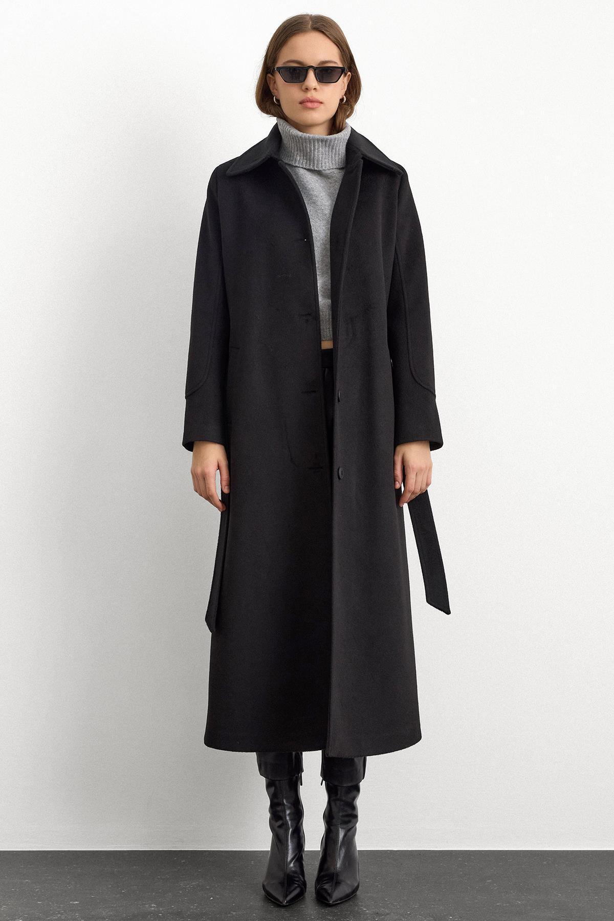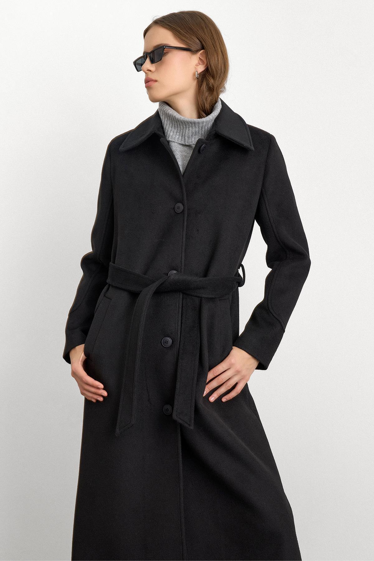 Gömlek Yaka Belden Bağlamalı Uzun Kaban SİYAH 3152