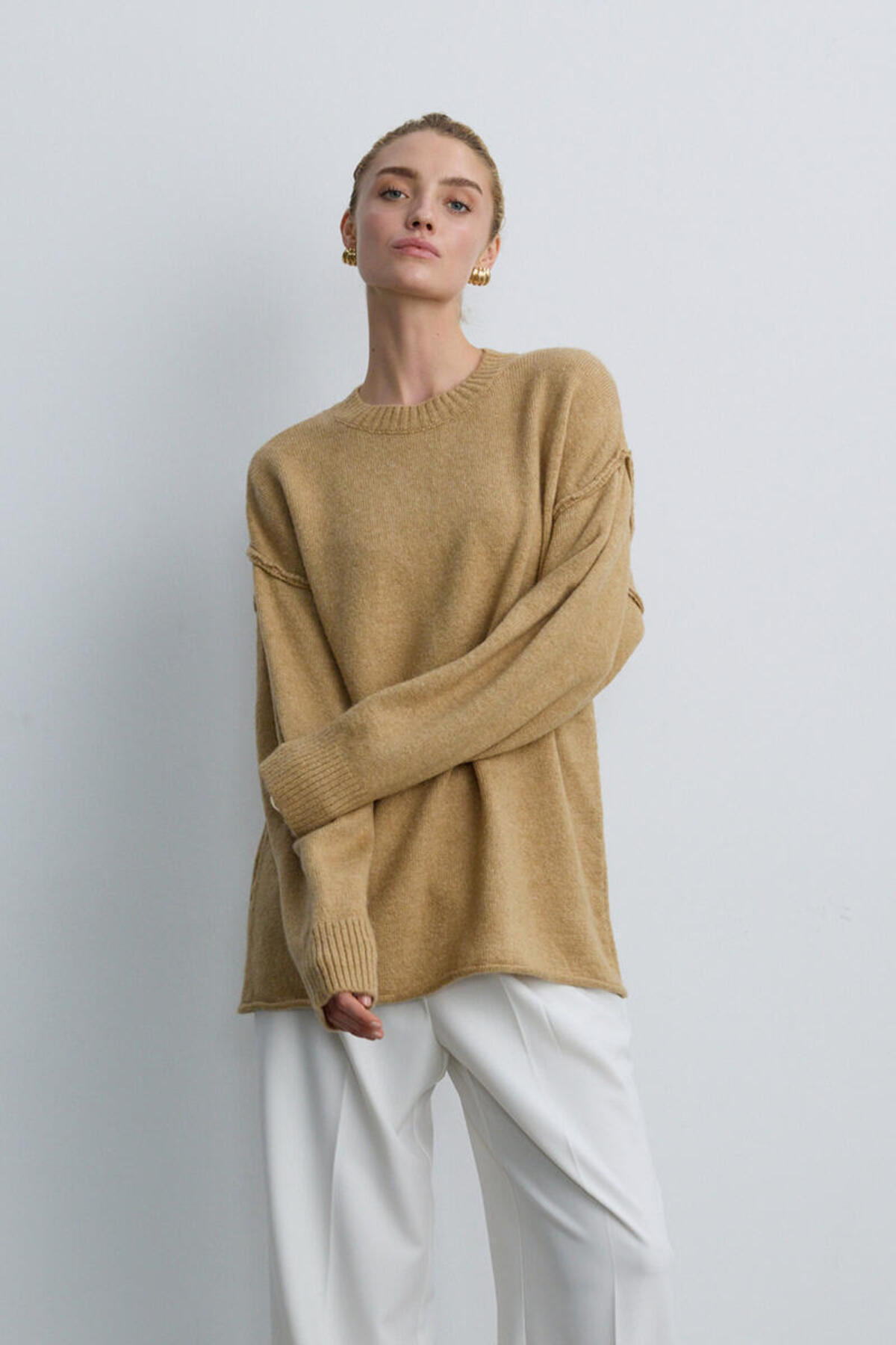 KUM DİKİŞ DETAYLI TRİKO KAZAK