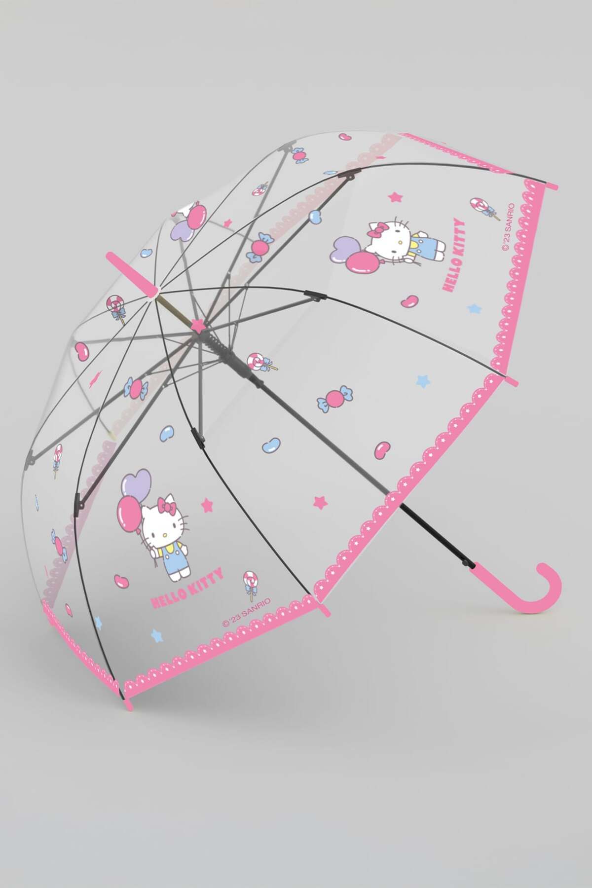 Lisanslı Şeffaf Uzun Saplı Şemsiye (Hello Kitty)