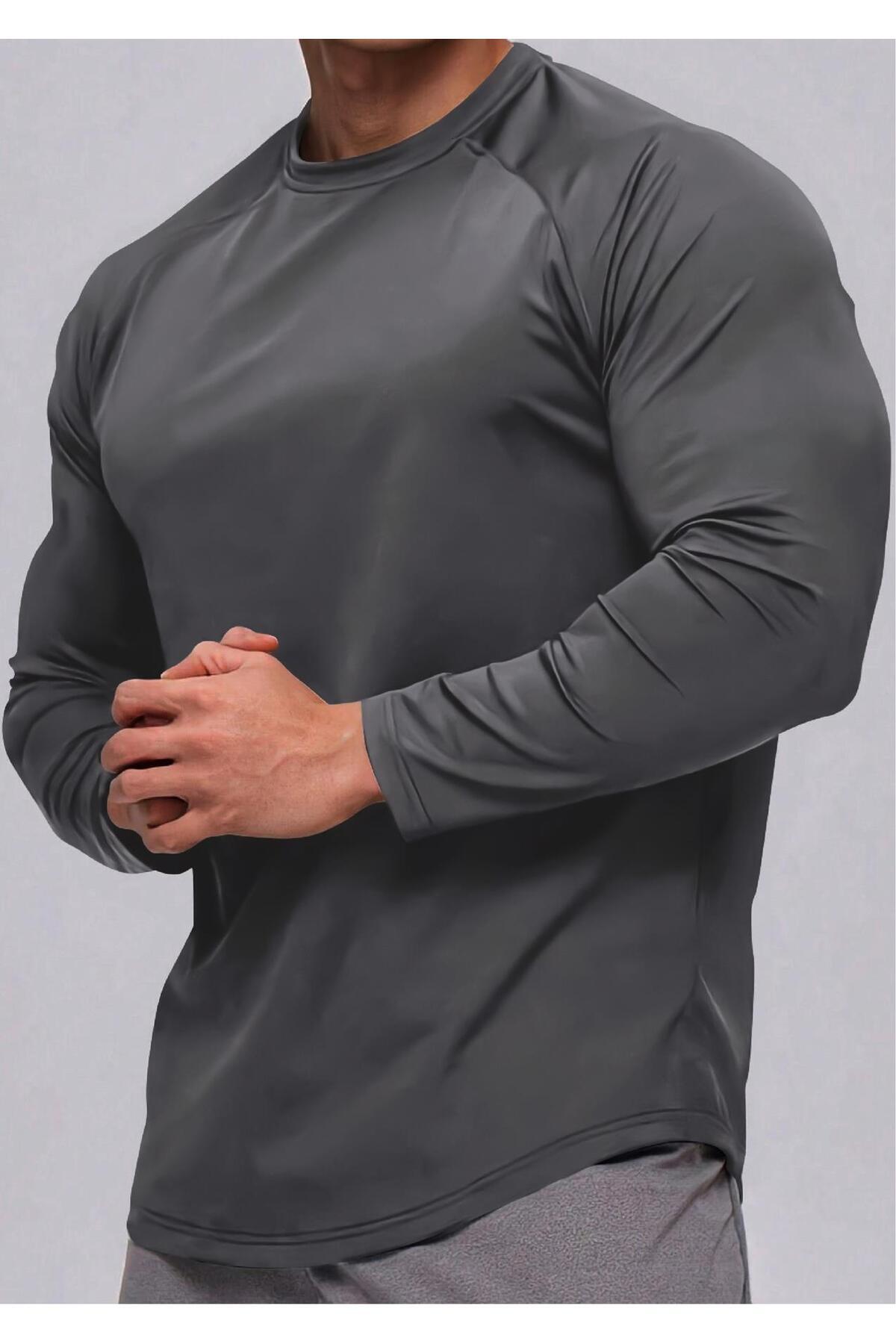 Erkek Running Sports Reglan Oval Kesim Uzun Kollu Pamuklu Penye T-shirt, rahatlık ve şıklığı bir araya getiriyor.