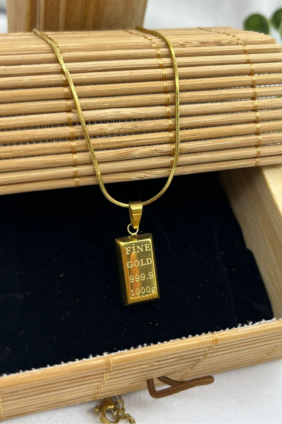 Sarı Altın Kaplama Paslanmaz Çelik Külçe Kolye Yılan Zincirli Erkek / Kadın eck61