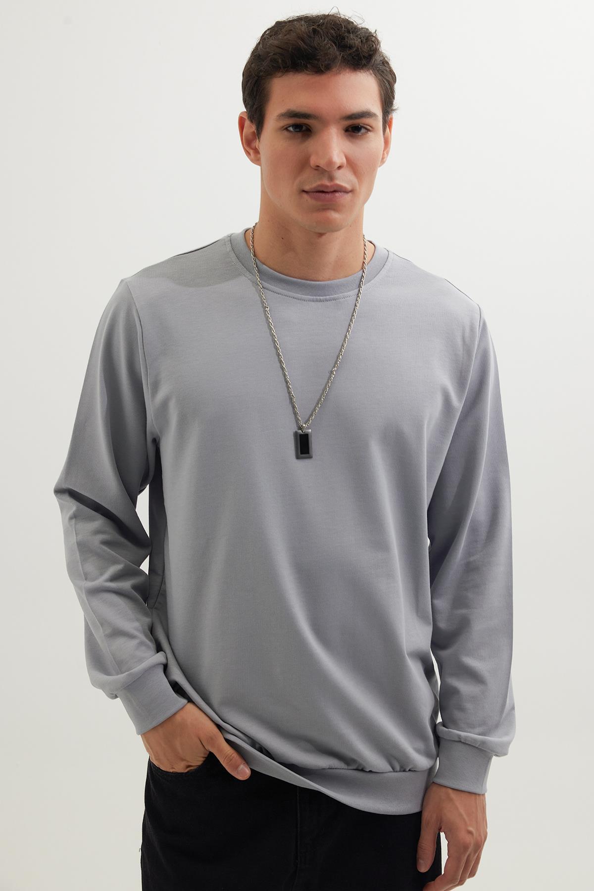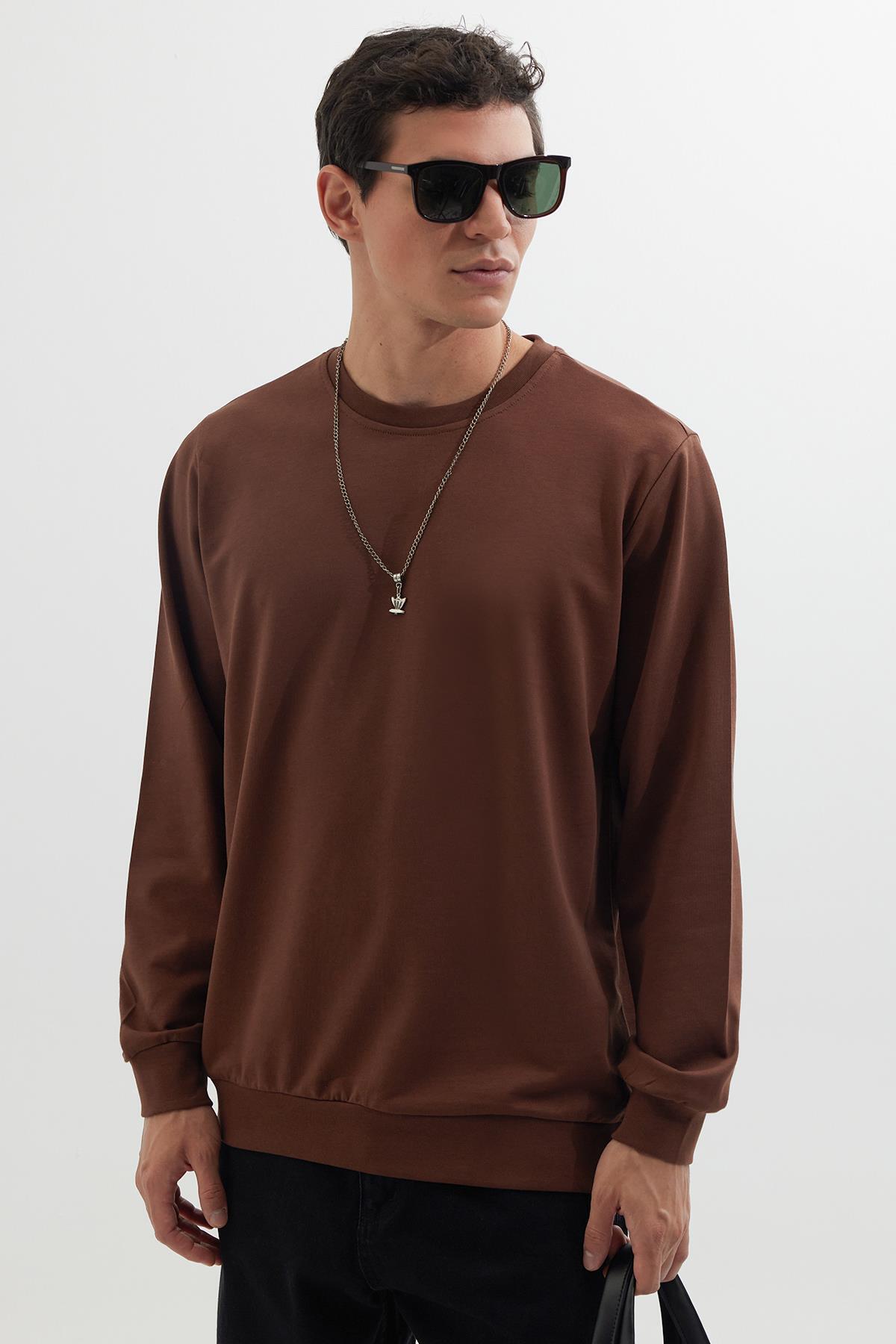 Erkek 3'lü Lacivert-Gri-Kahverengi Relax Fit Rahat Kesim %100 Pamuk 2 İplik Bisiklet Yaka Sweatshirt