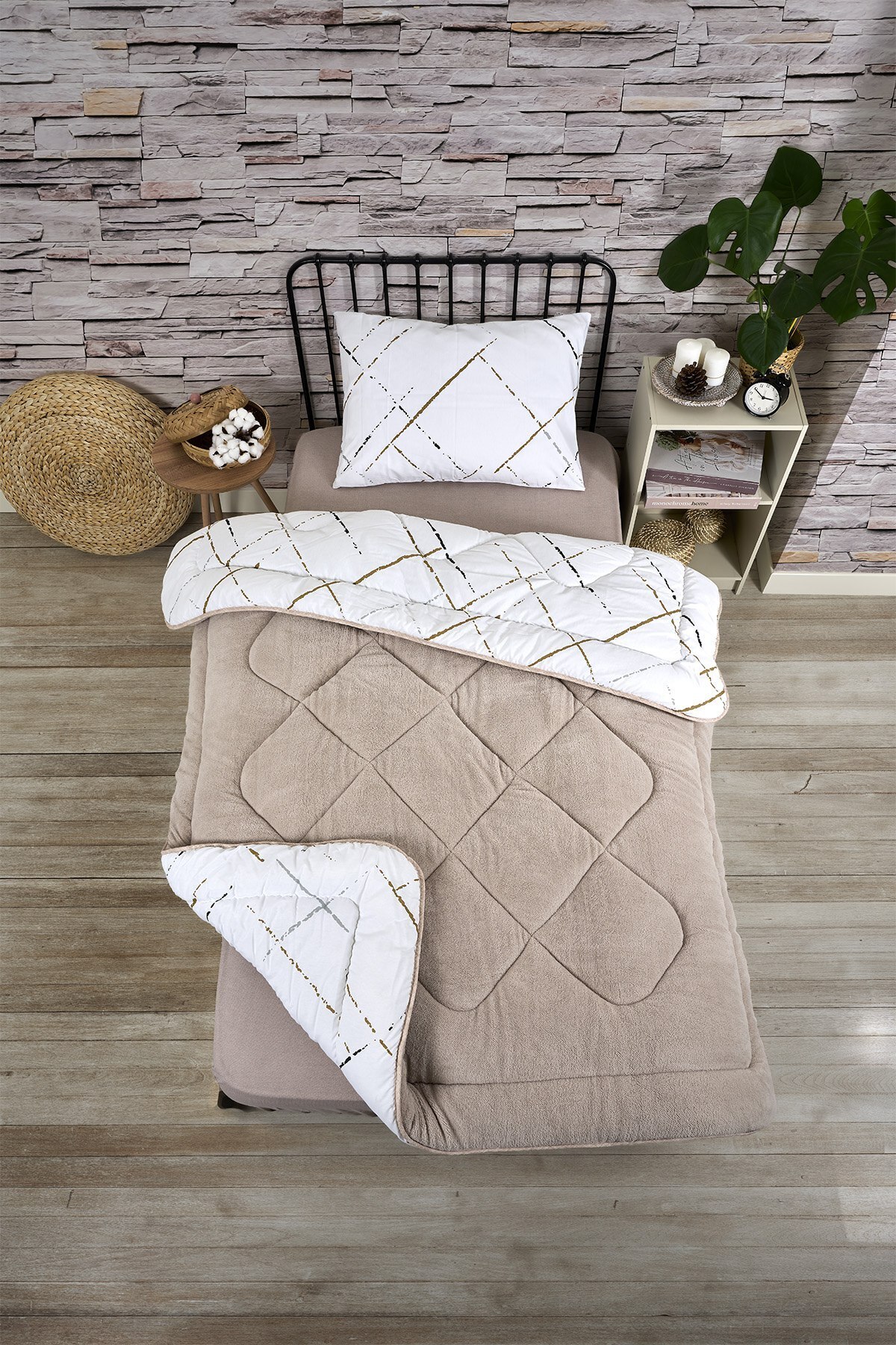 155x215 cm yorgan50X70 CM 2 YASTIK KILIFIÇarşaf dahil değildirİSTER YORGAN İSTER YATAK ÖRTÜSÜ İSTER BATTANİYE OLARAK KULLANILIR