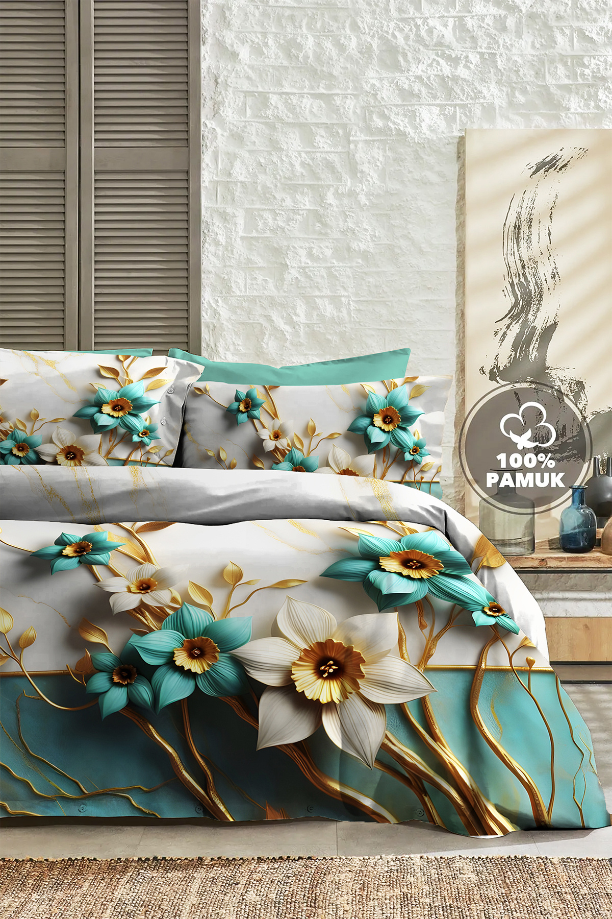%100 Pamuk Ranforce Çeyizlik Luxury 5d Dijital Battal Çift Kişilik Nevresim Takımı Papatya